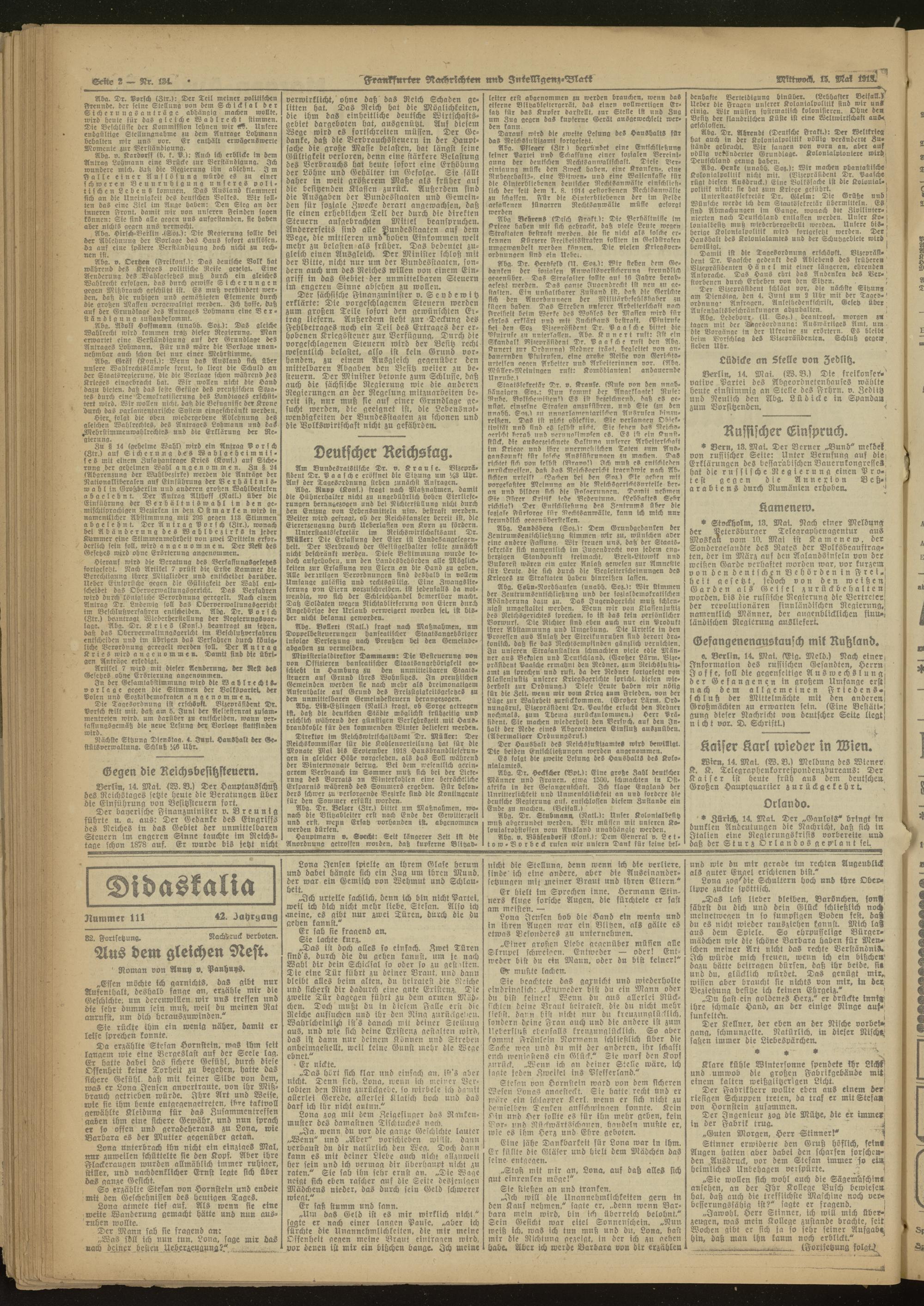 15.05.1918 Morgen-Ausgabe = Nr. 134