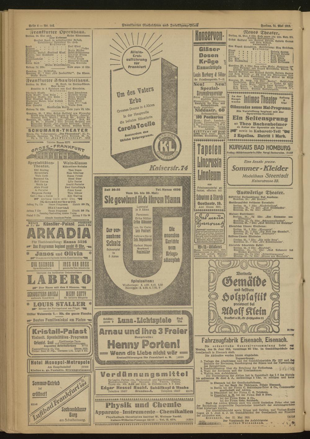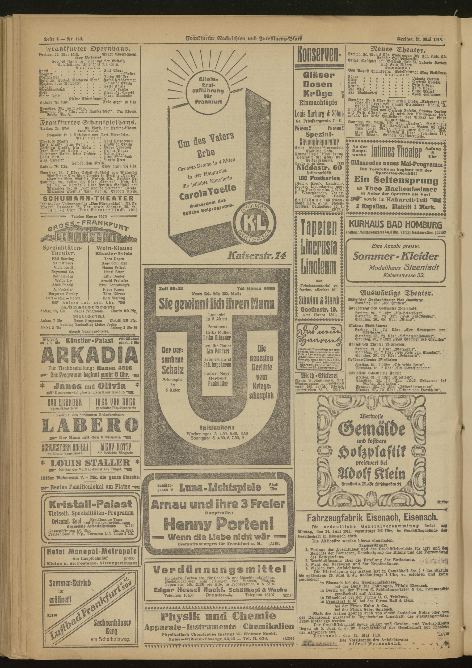 24.05.1918 Morgen-Ausgabe = Nr. 142
