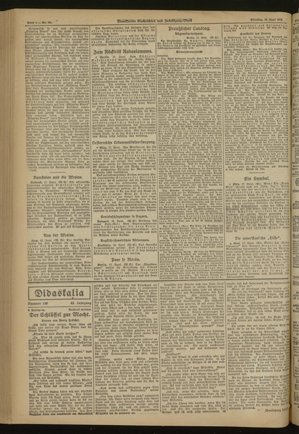 18.06.1918 Morgen-Ausgabe = Nr. 167