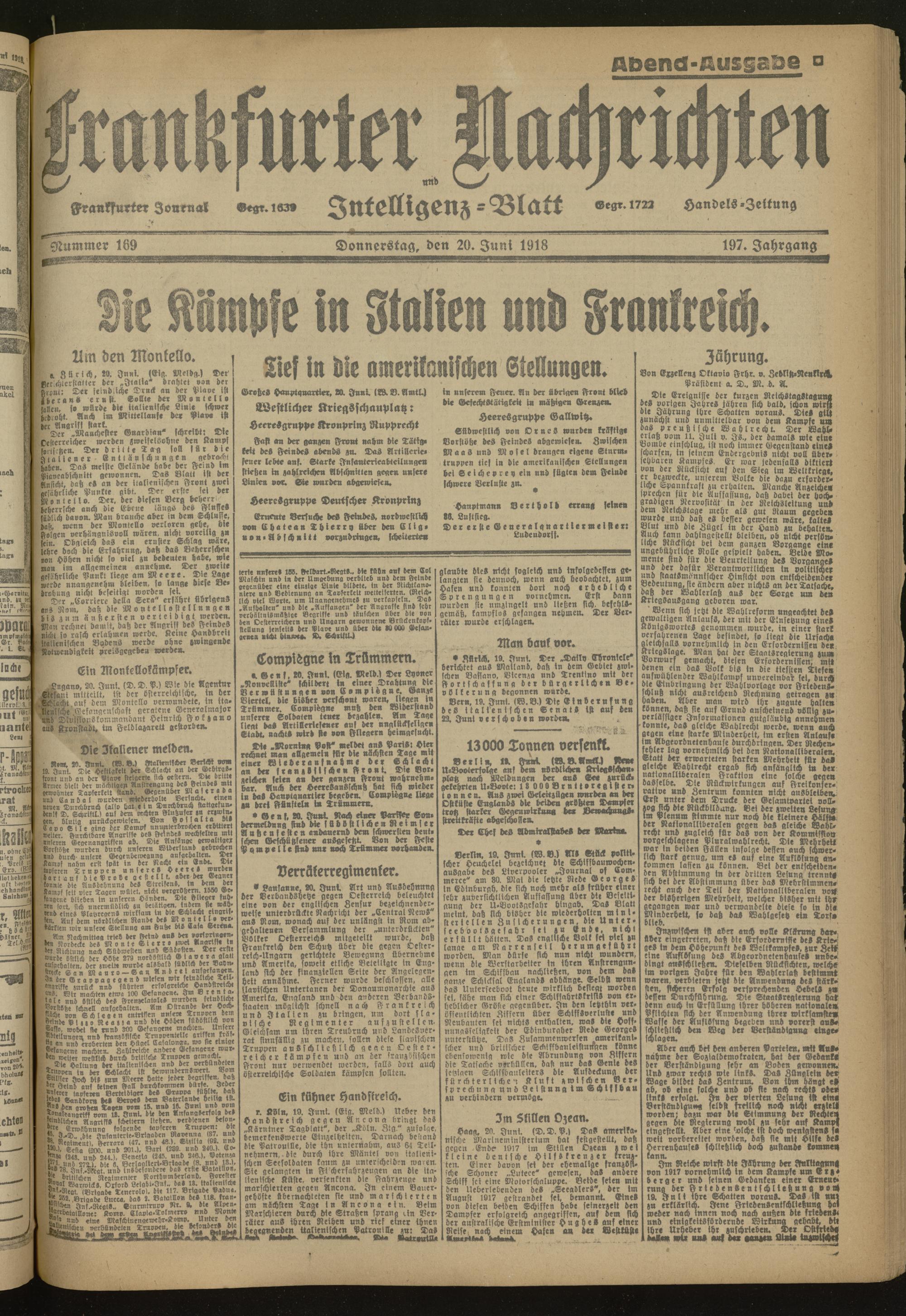 20.06.1918 Abend-Ausgabe = Nr. 169