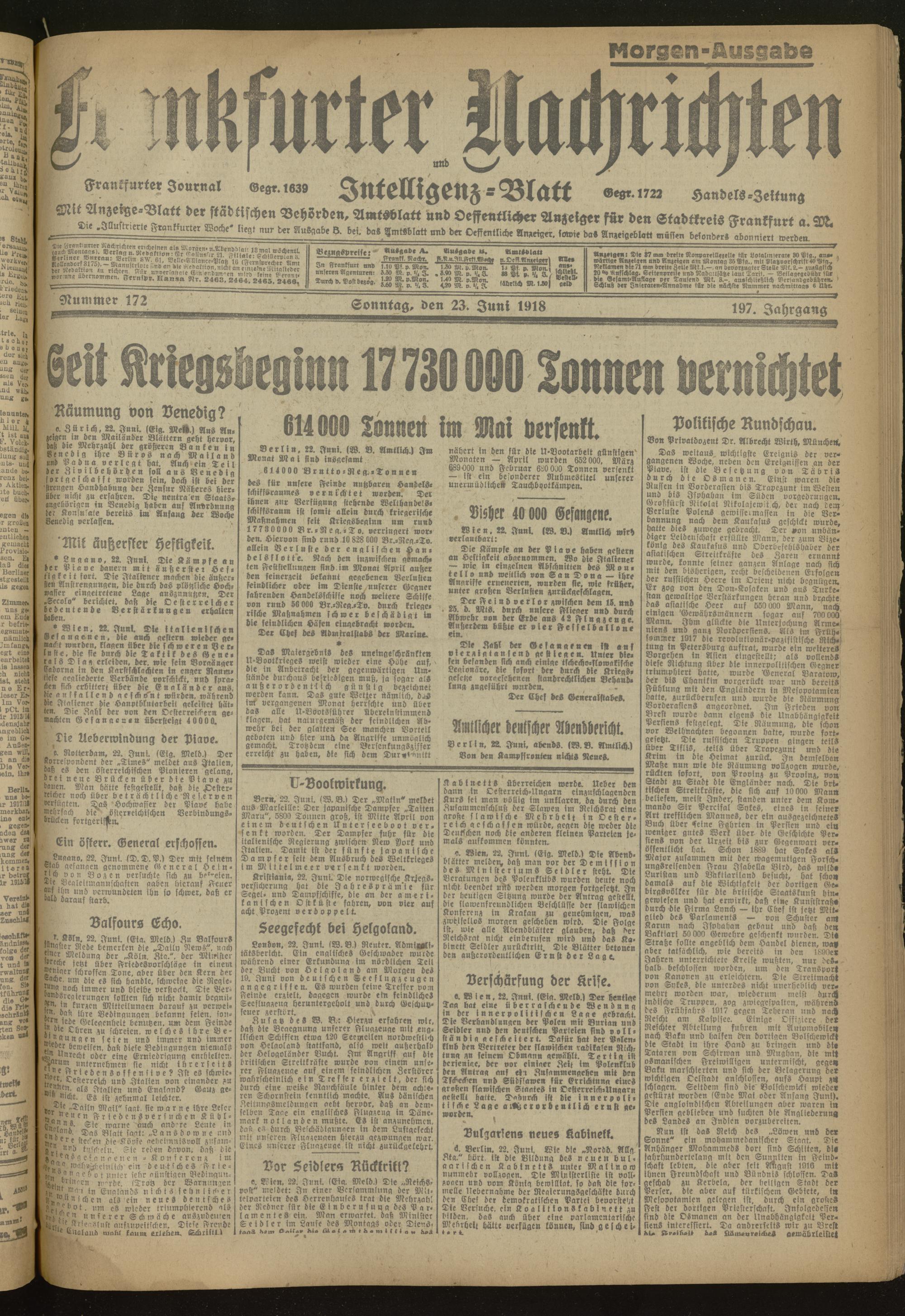 23.06.1918 Morgen-Ausgabe = Nr. 172