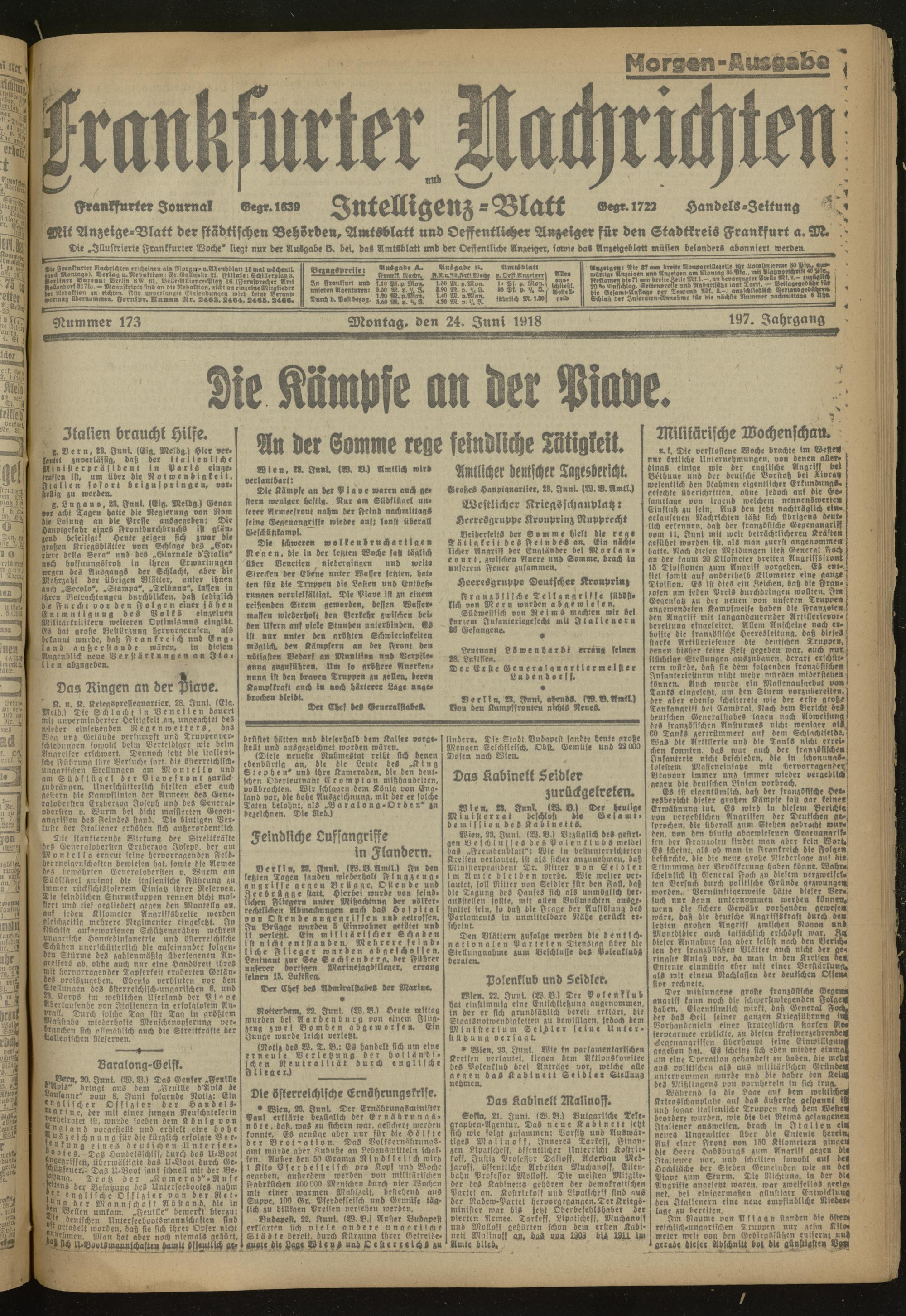 24.06.1918 Morgen-Ausgabe = Nr. 173
