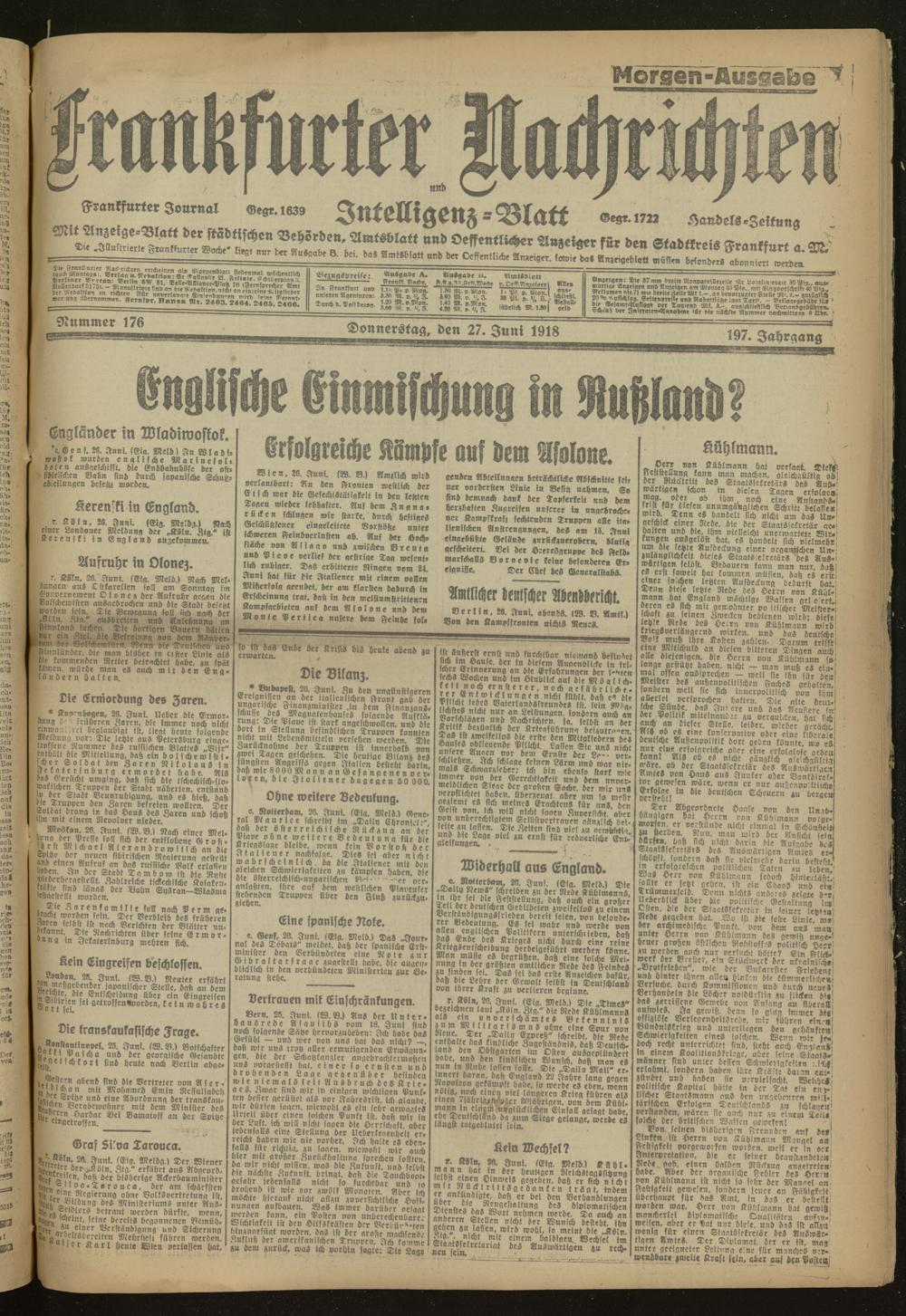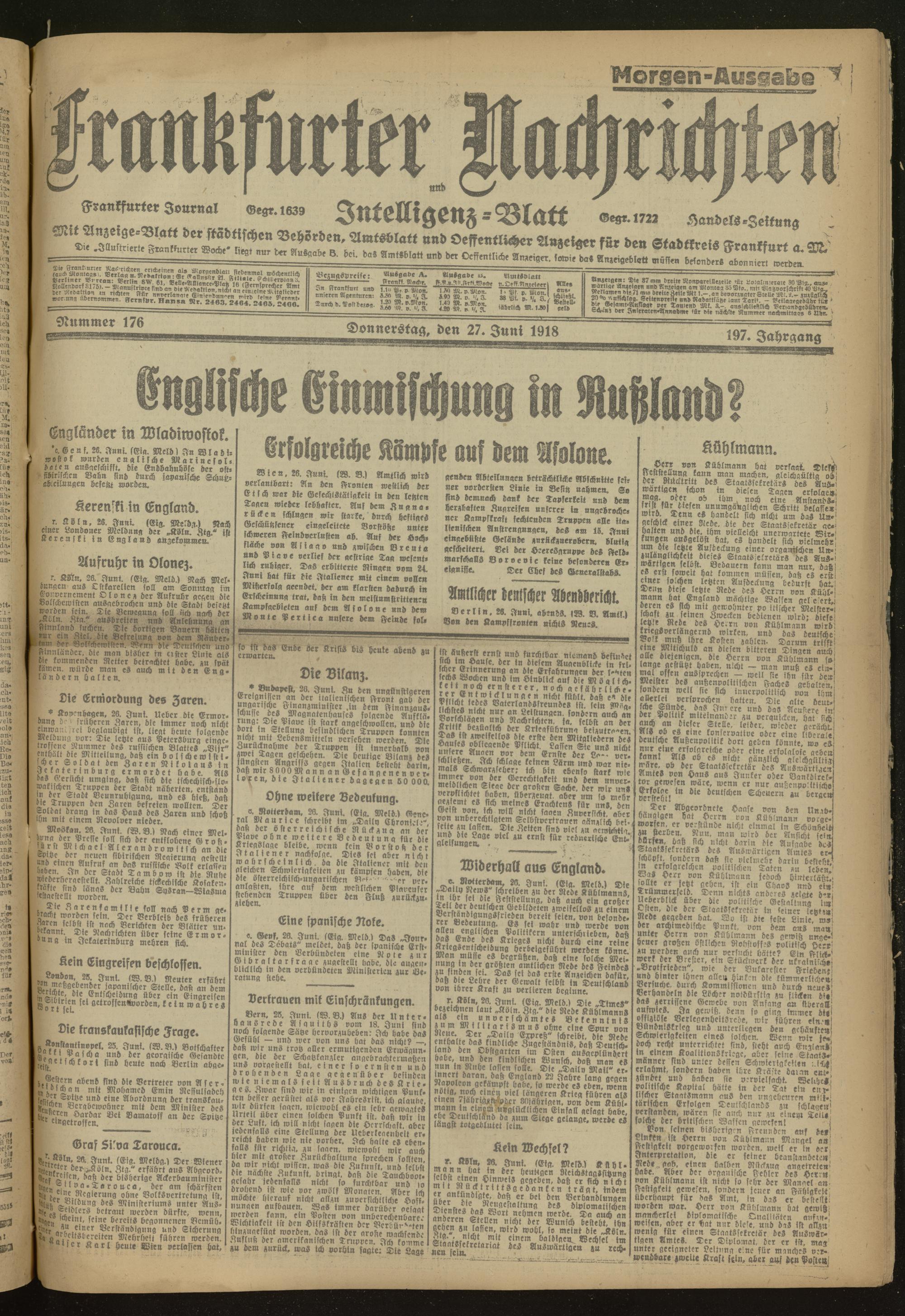 27.06.1918 Morgen-Ausgabe = Nr. 176