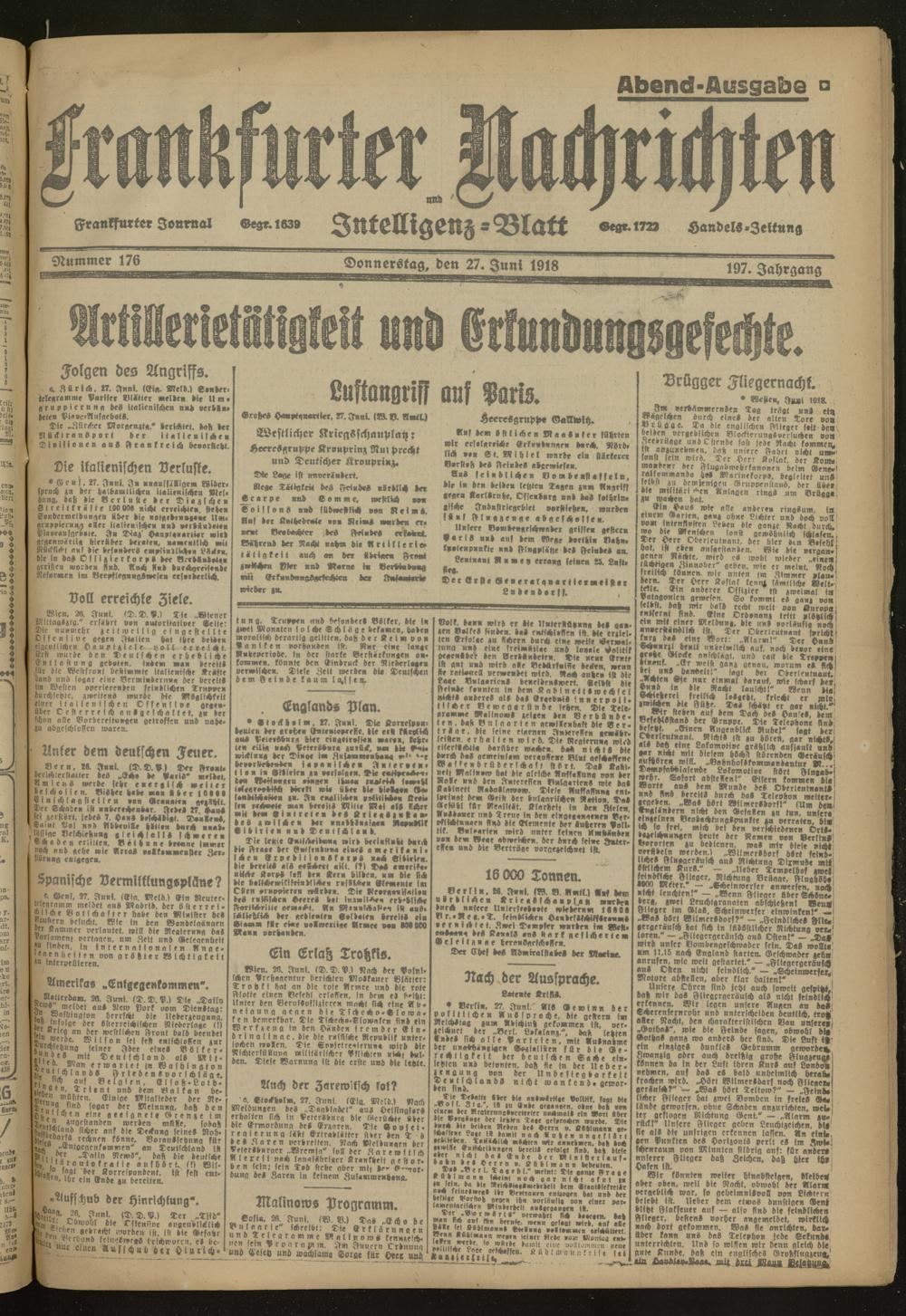 27.06.1918 Abend-Ausgabe = Nr. 176