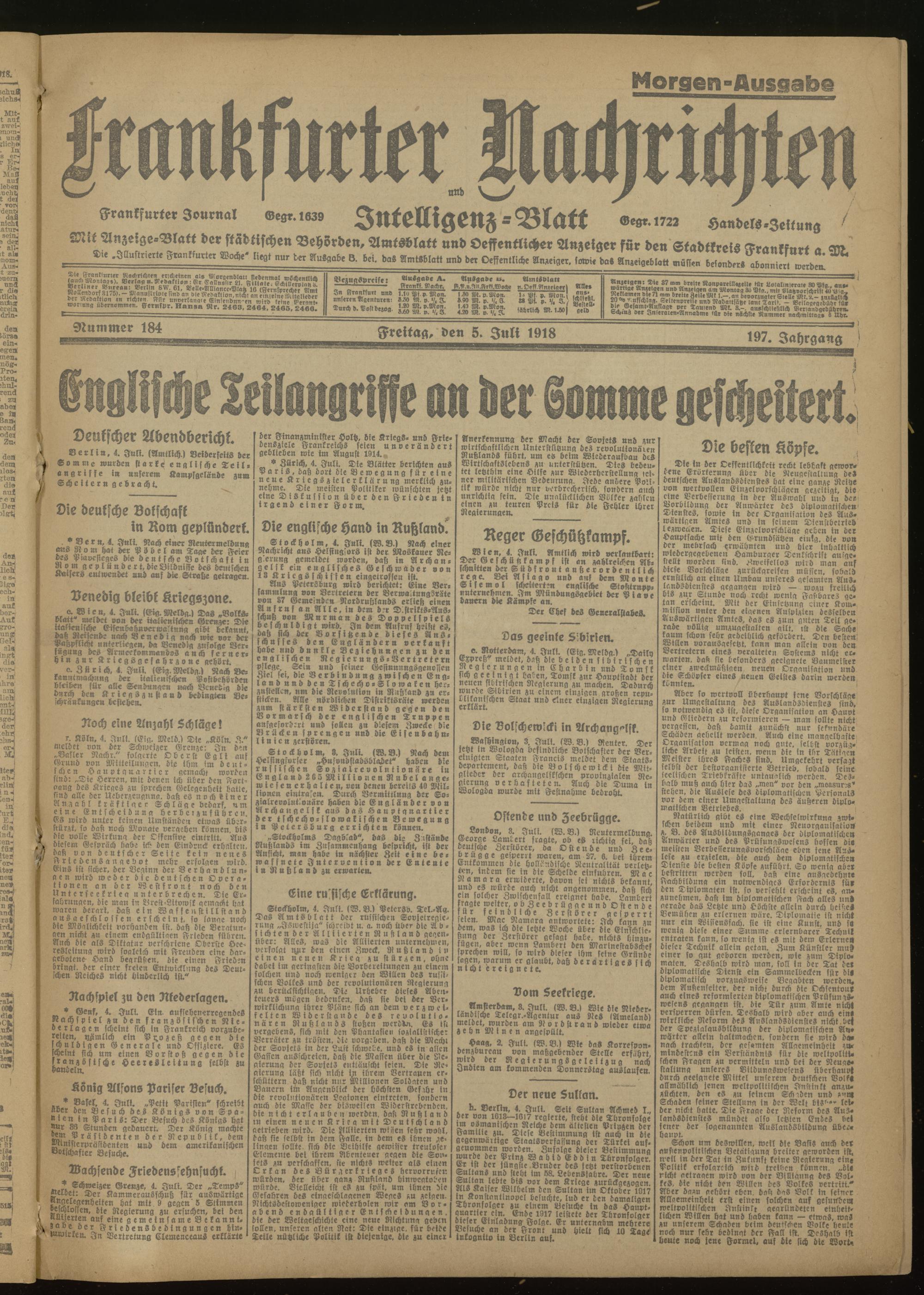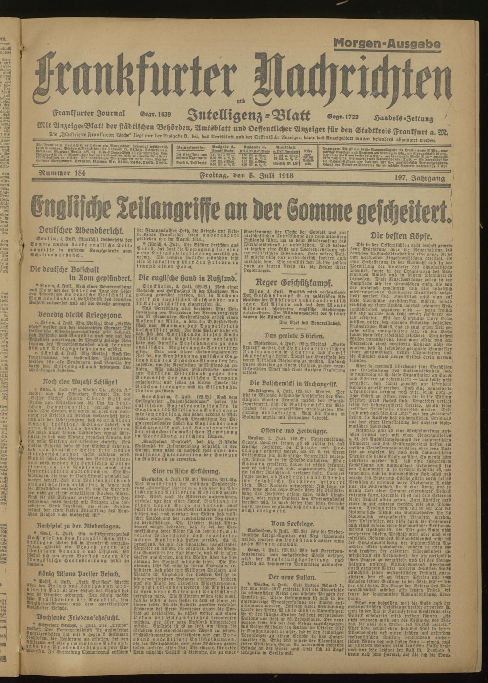 05.07.1918 Morgen-Ausgabe = Nr. 184