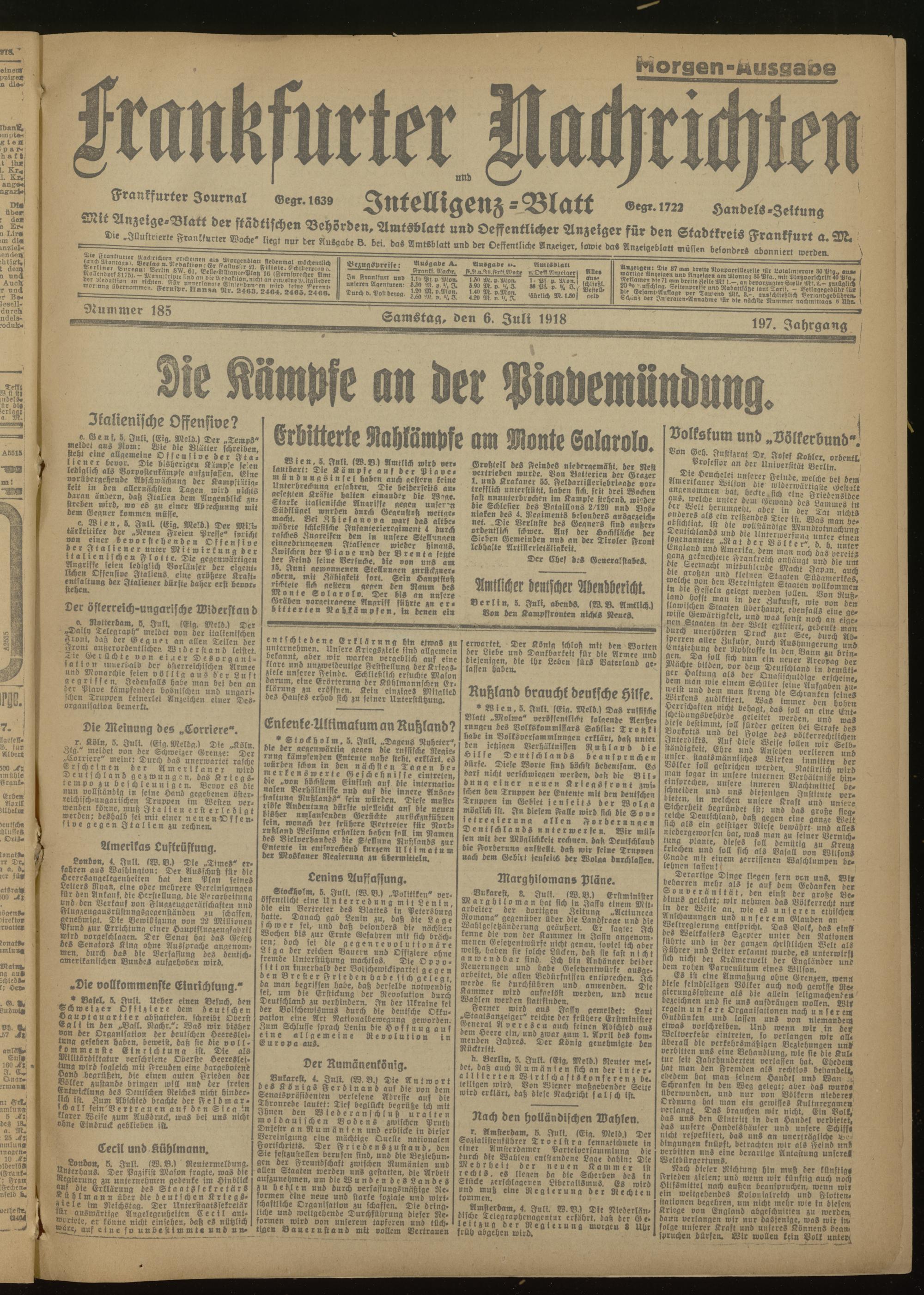 06.07.1918 Morgen-Ausgabe = Nr. 185