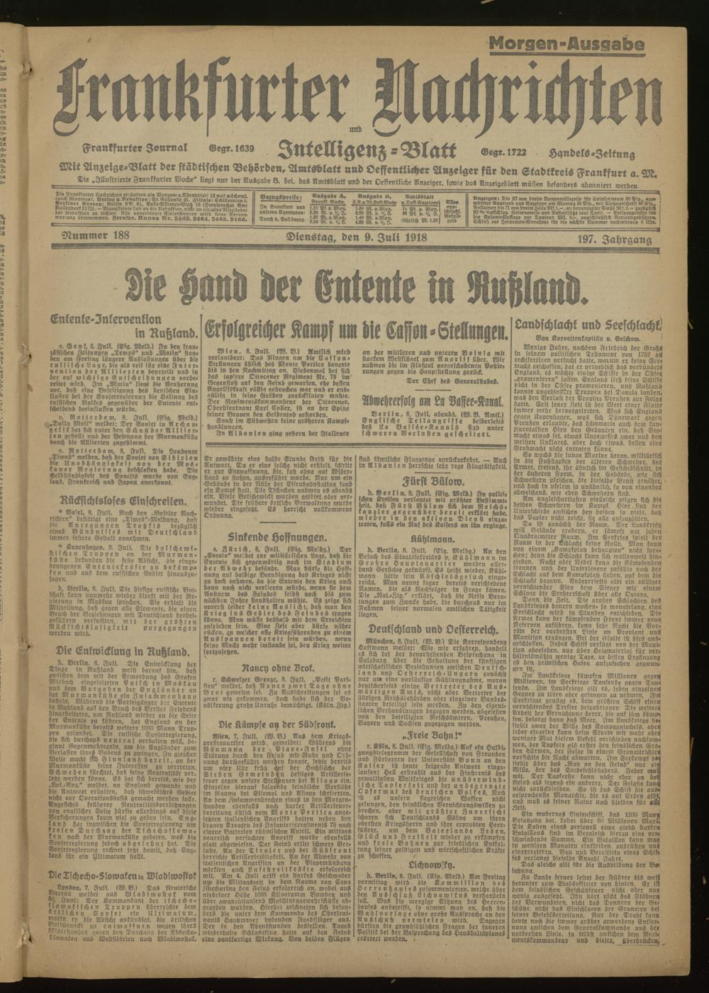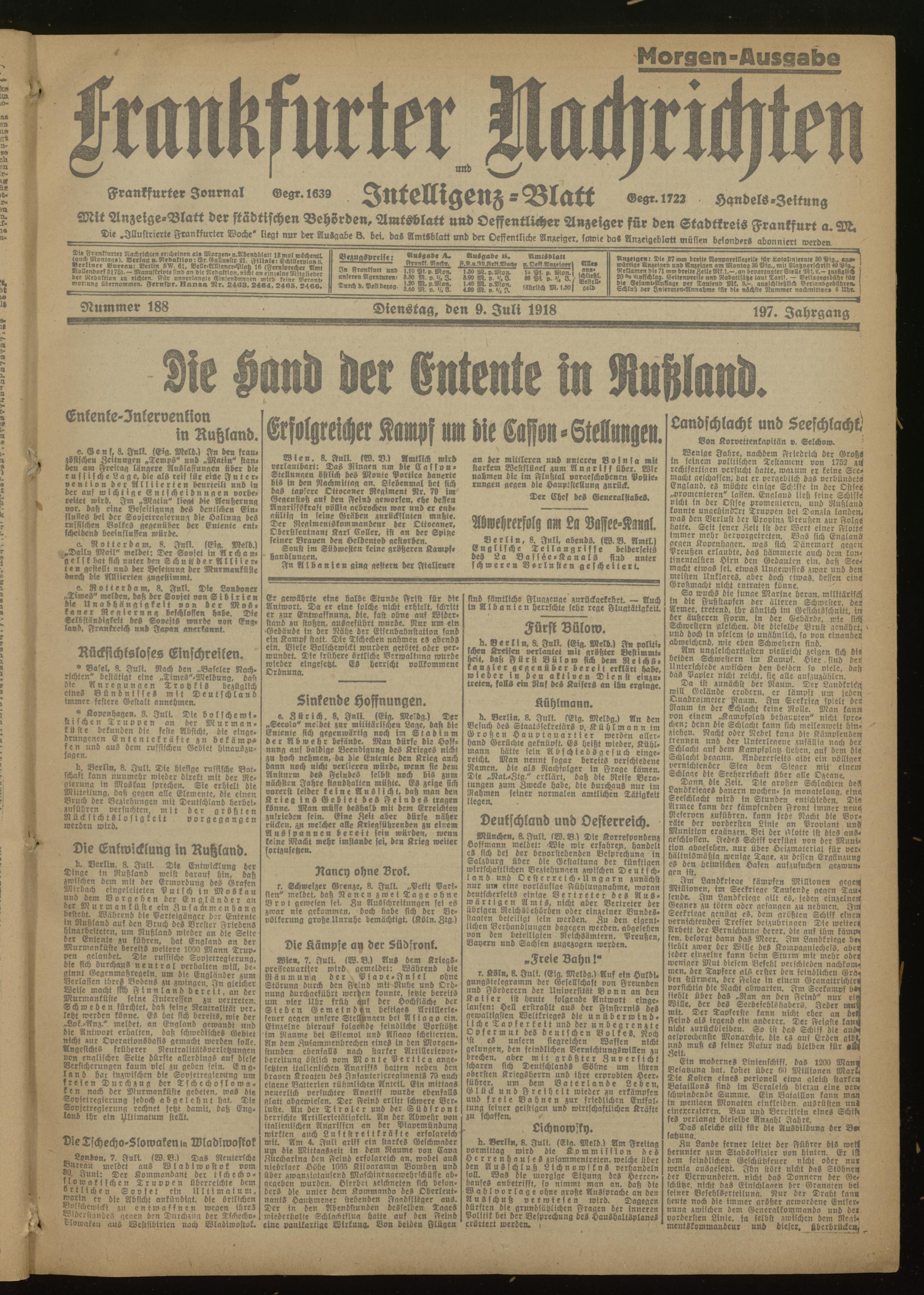 09.07.1918 Morgen-Ausgabe = Nr. 188