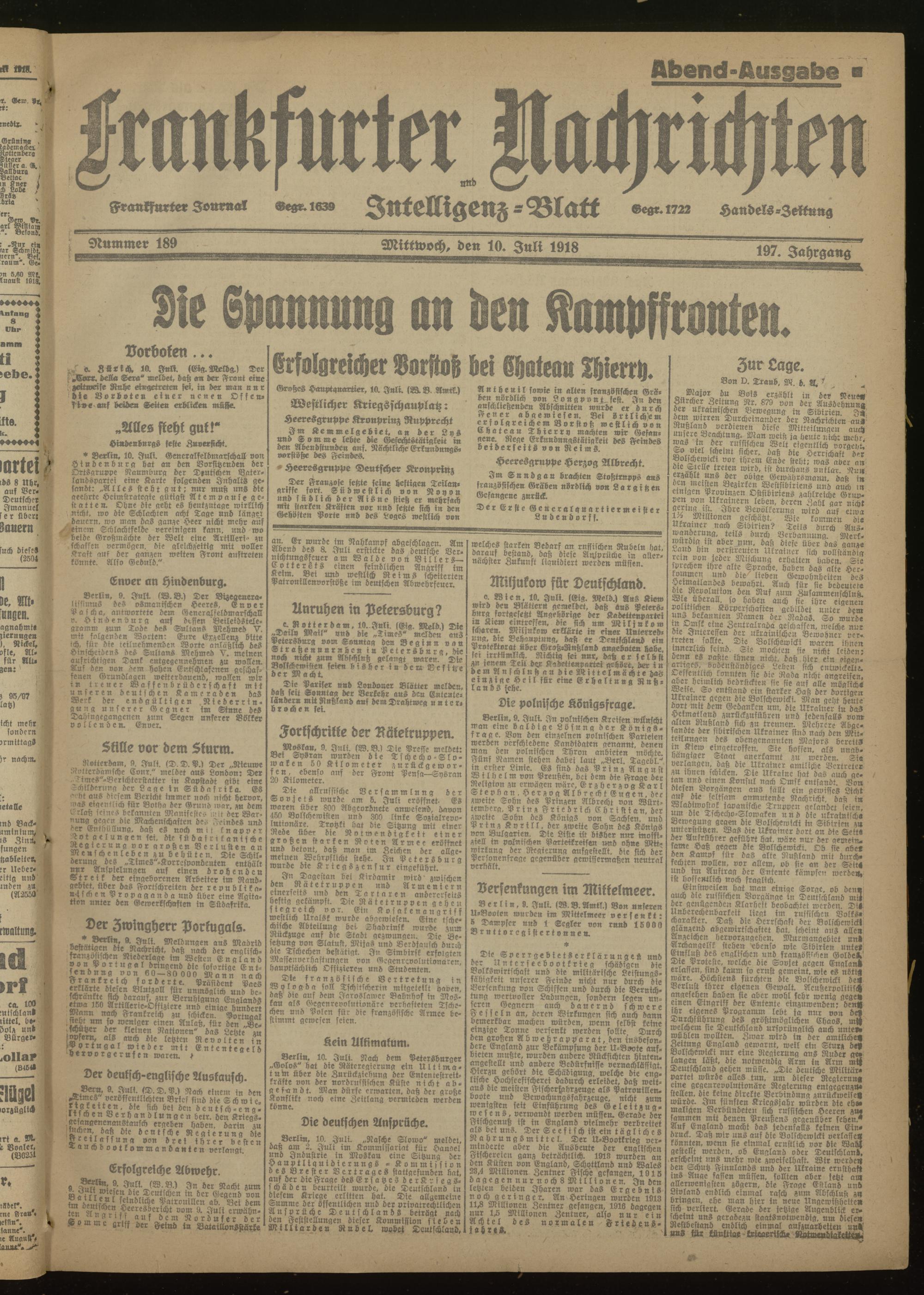 10.07.1918 Abend-Ausgabe = Nr. 189