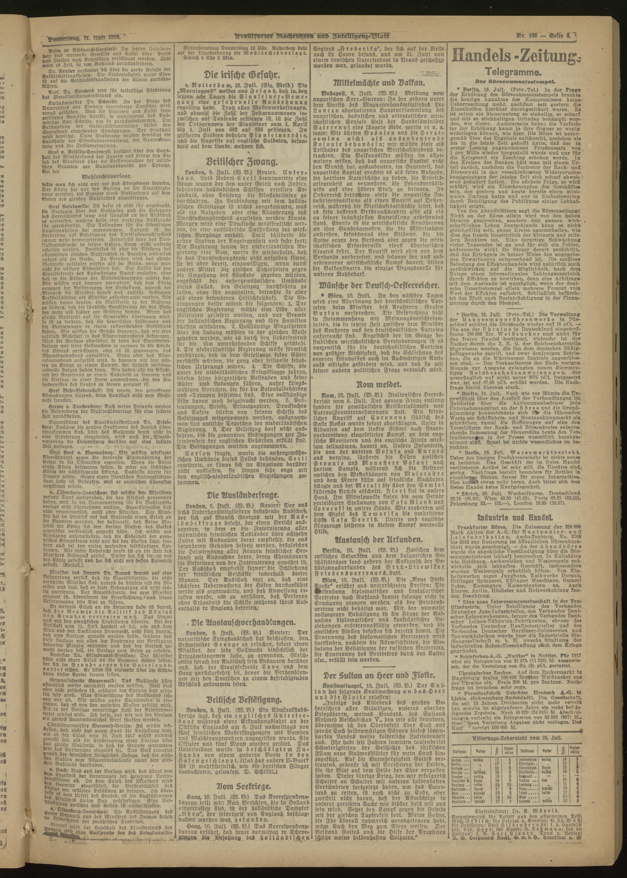 11.07.1918 Morgen-Ausgabe = Nr. 190