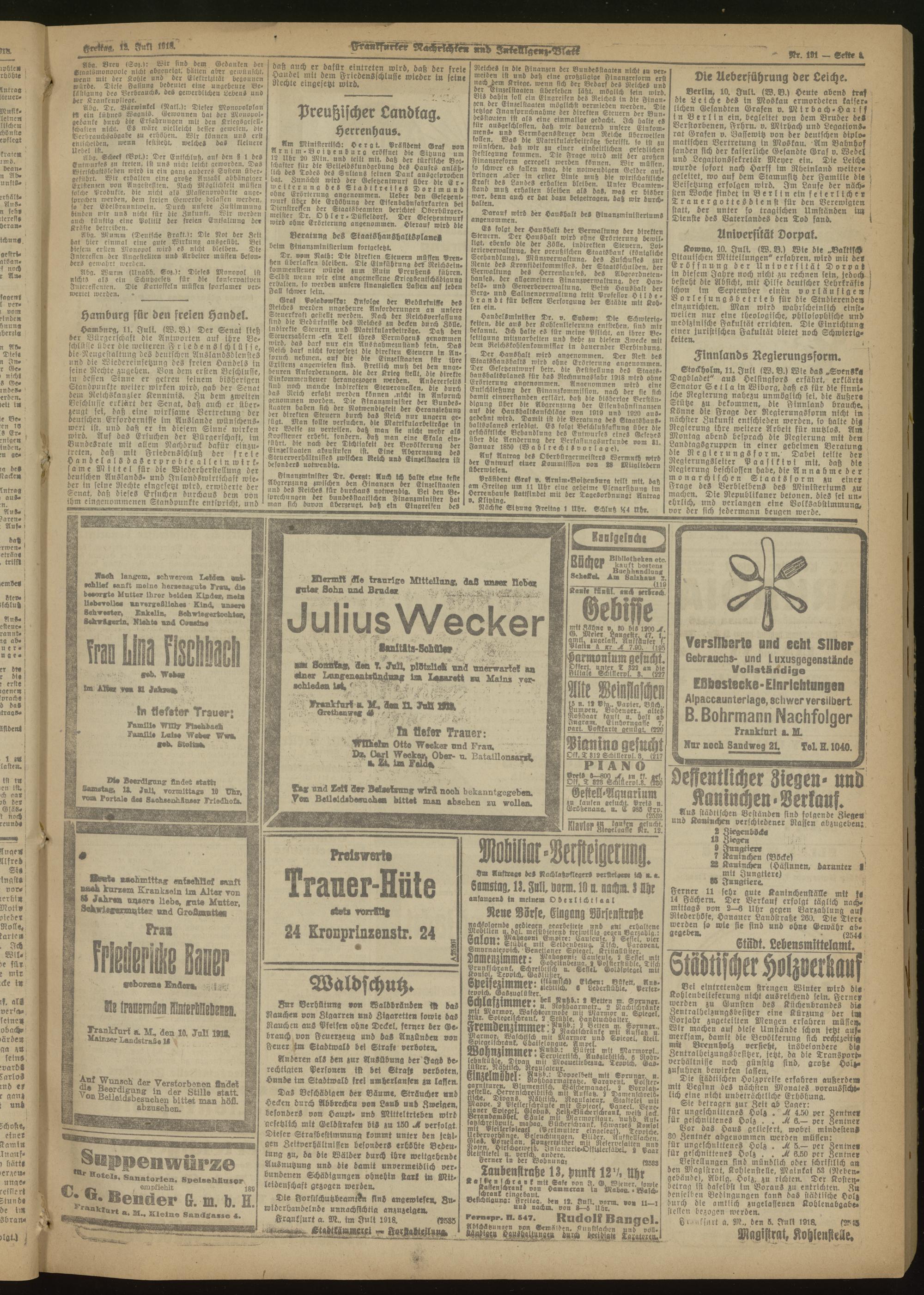 12.07.1918 Morgen-Ausgabe = Nr. 191