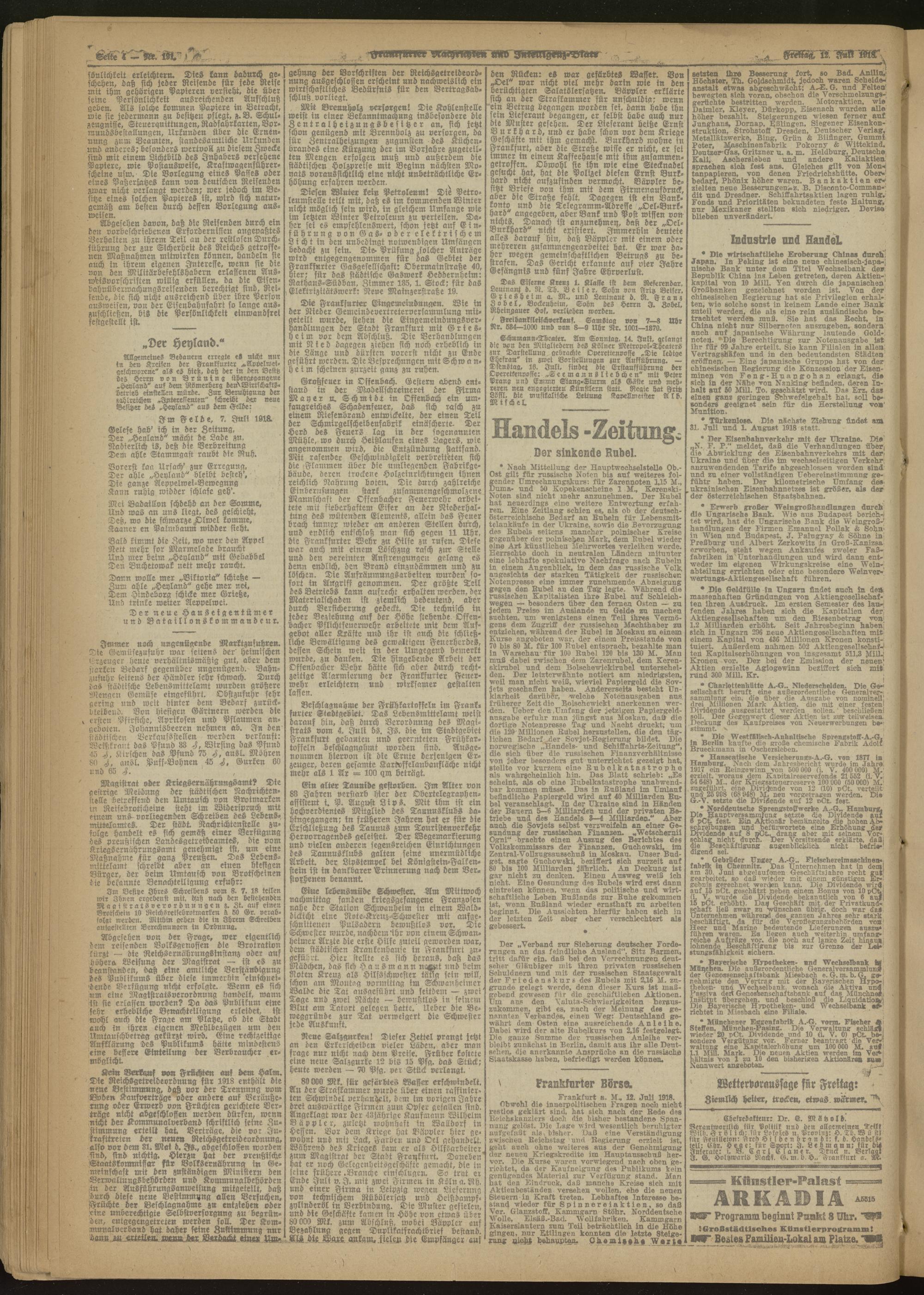 12.07.1918 Abend-Ausgabe = Nr. 191