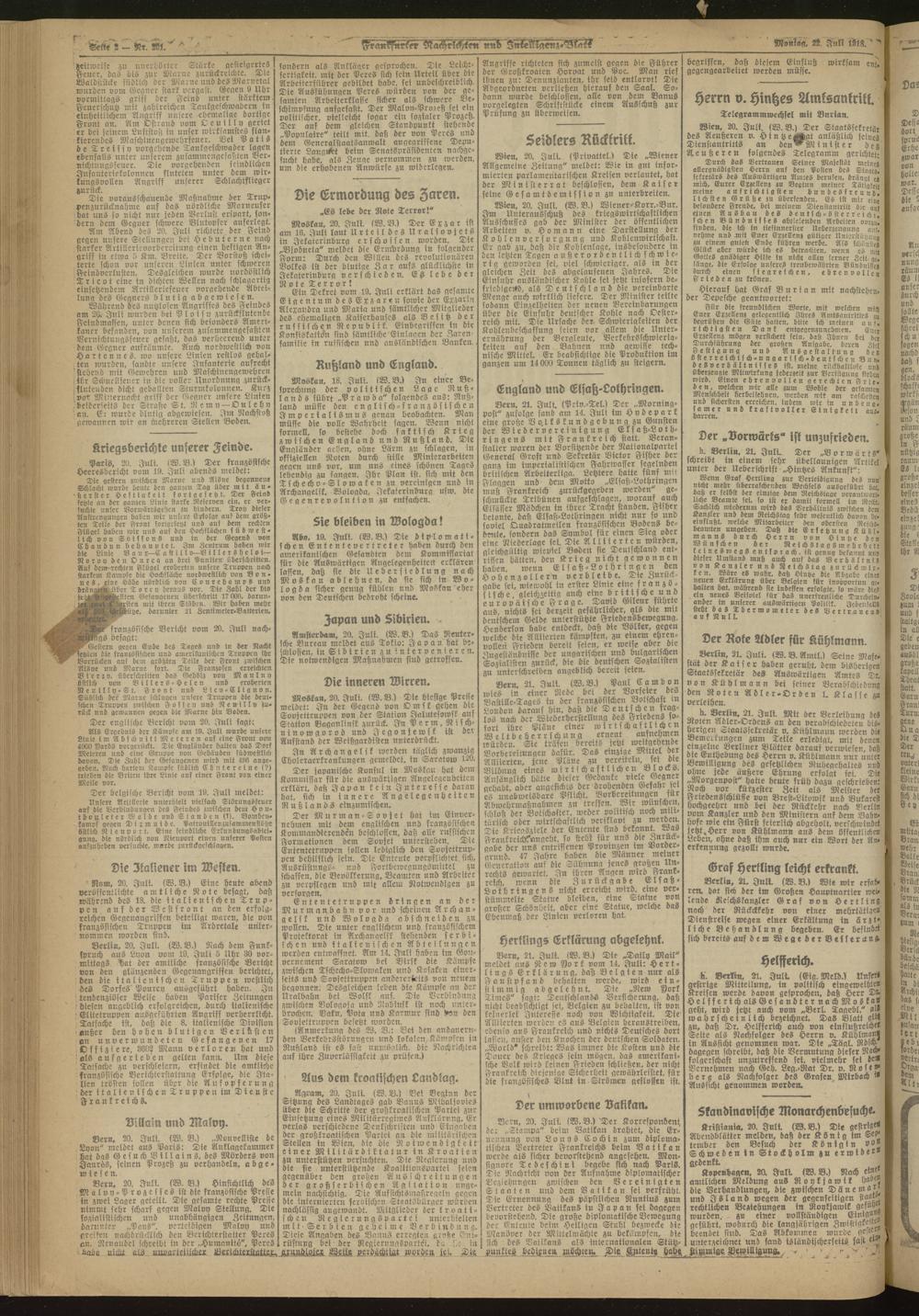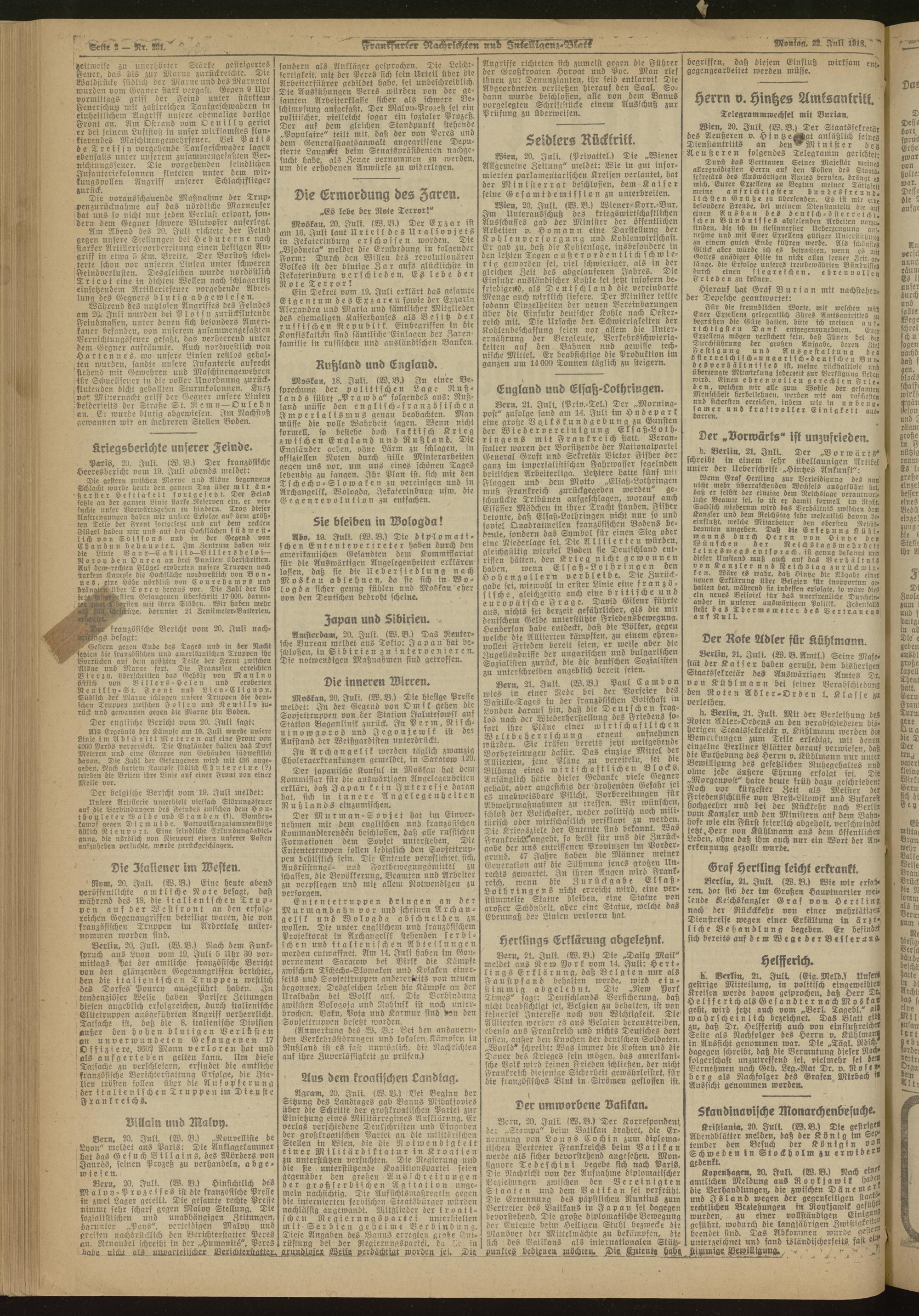 22.07.1918 Morgen-Ausgabe = Nr. 201