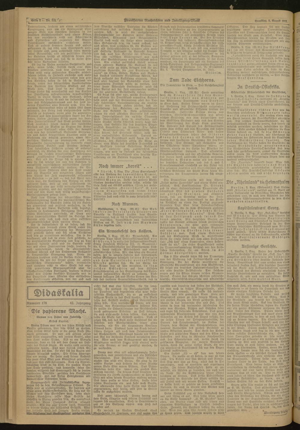 03.08.1918 Morgen-Ausgabe = Nr. 213
