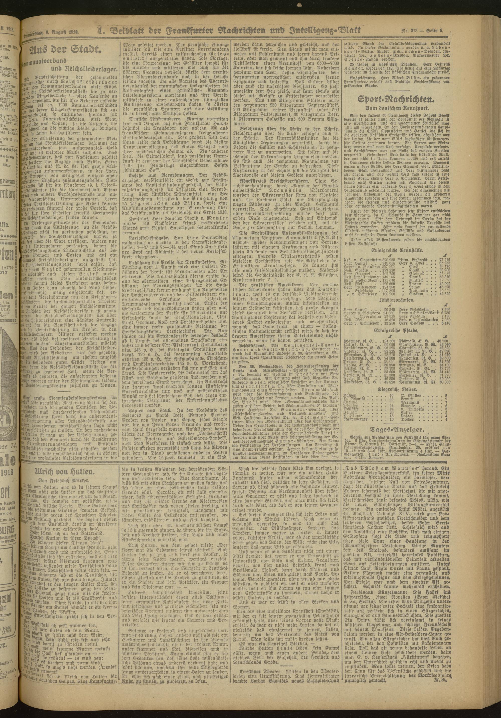 08.08.1918 Morgen-Ausgabe = Nr. 218