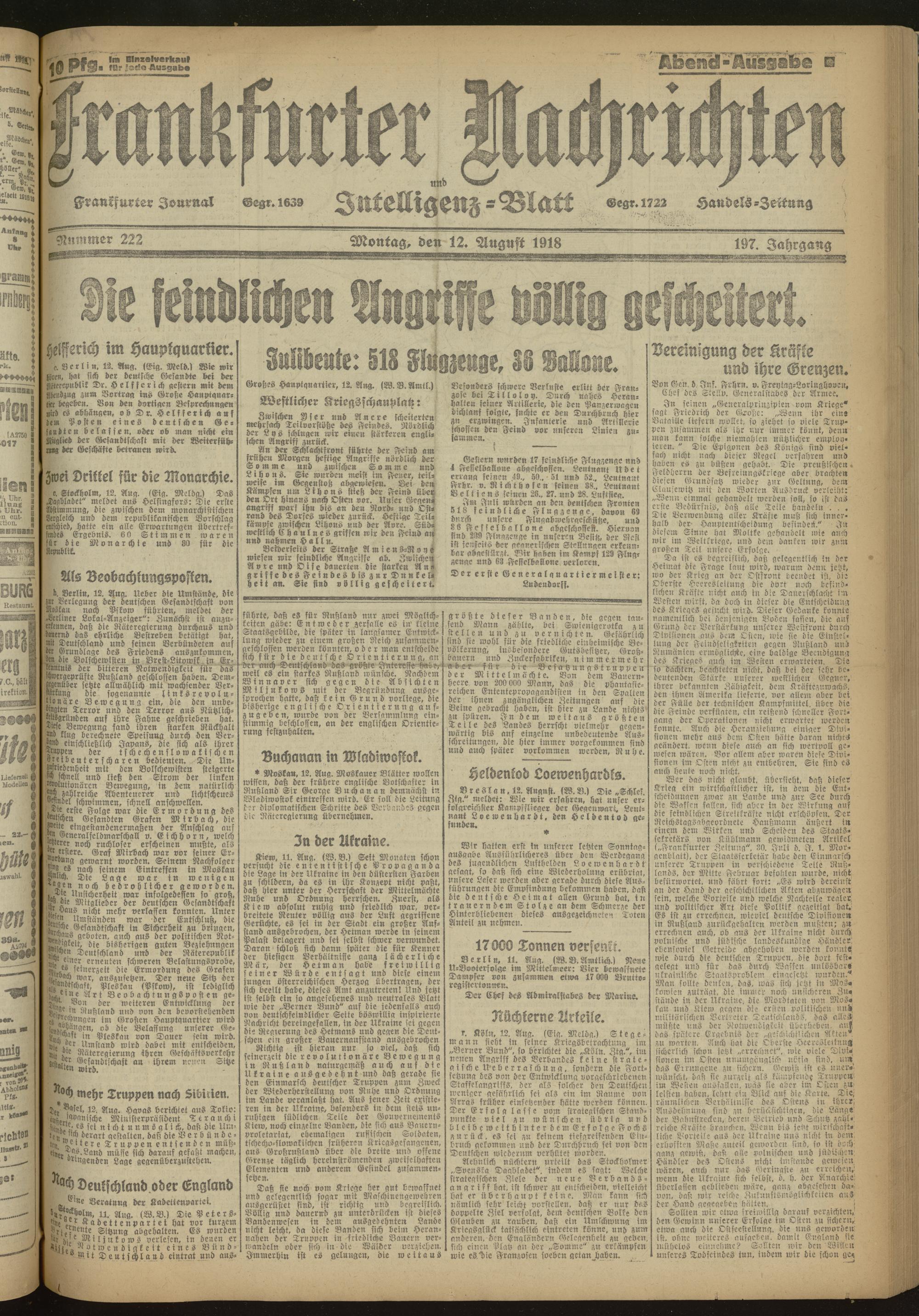 12.08.1918 Abend-Ausgabe = Nr. 222
