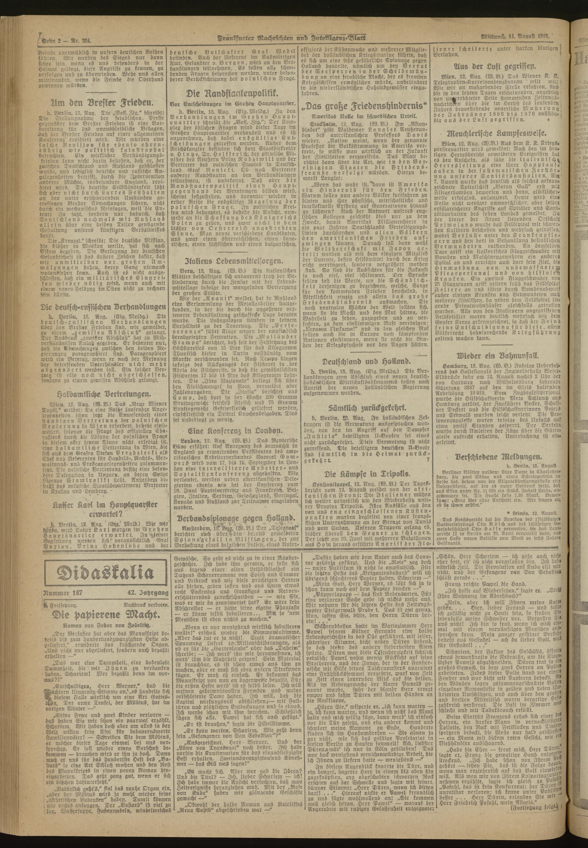14.08.1918 Morgen-Ausgabe = Nr. 224