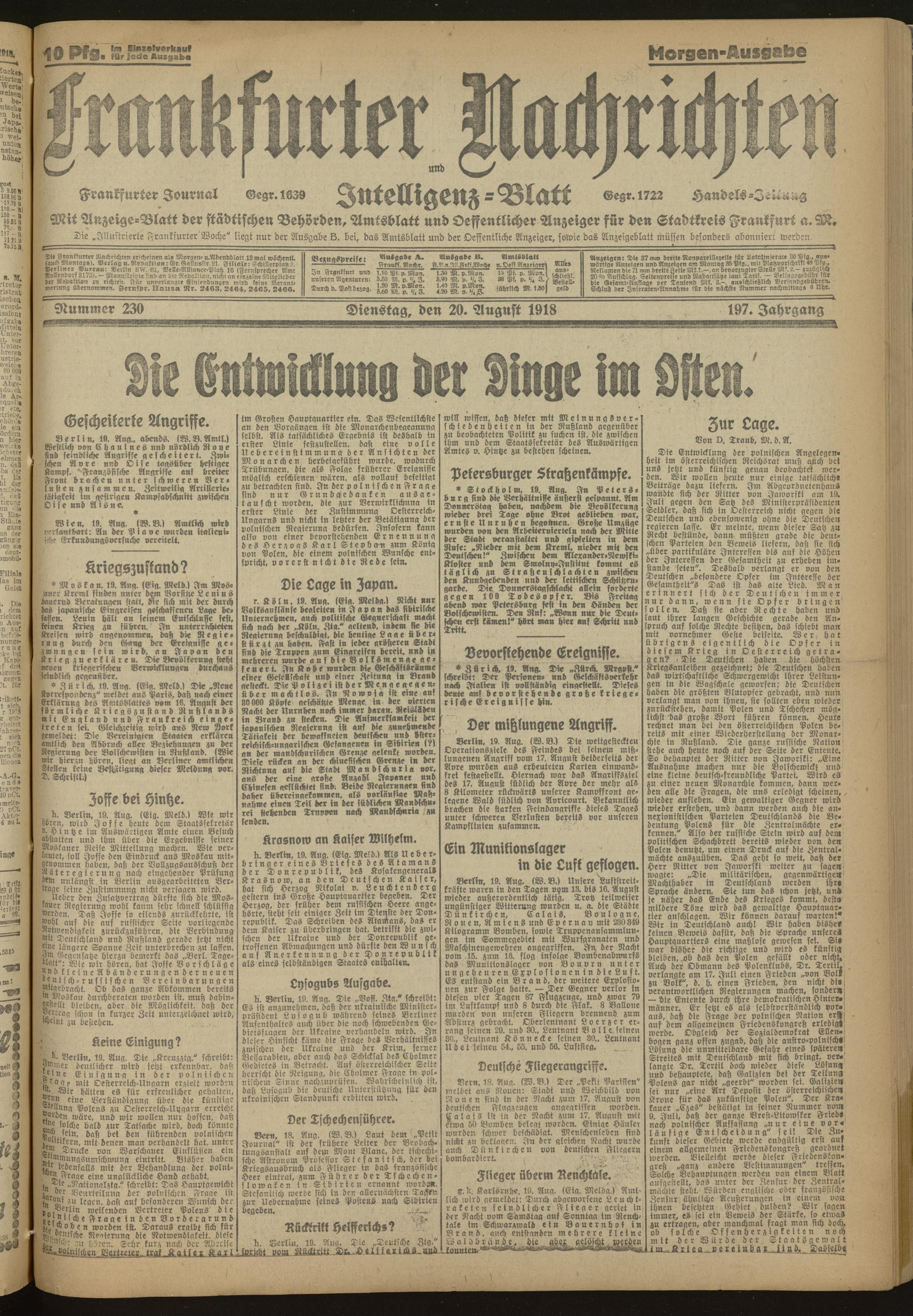 20.08.1918 Morgen-Ausgabe = Nr. 230