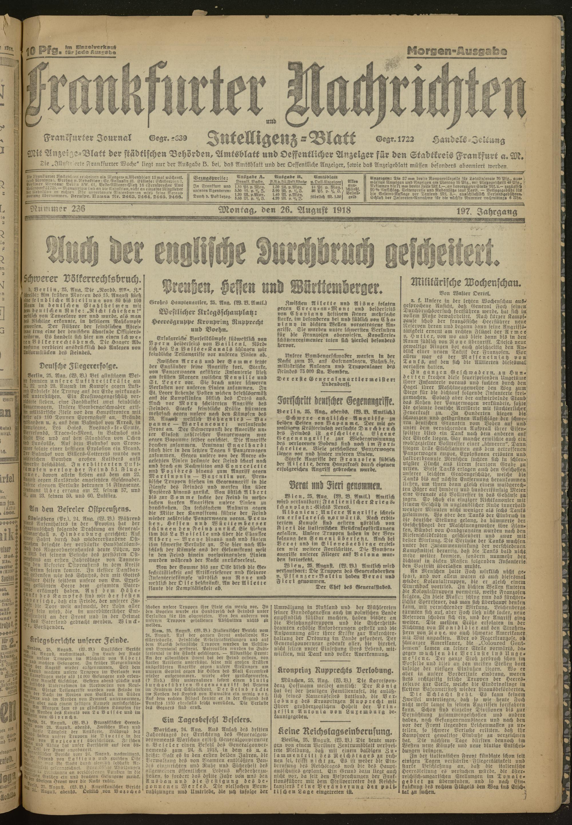 26.08.1918 Morgen-Ausgabe = Nr. 236