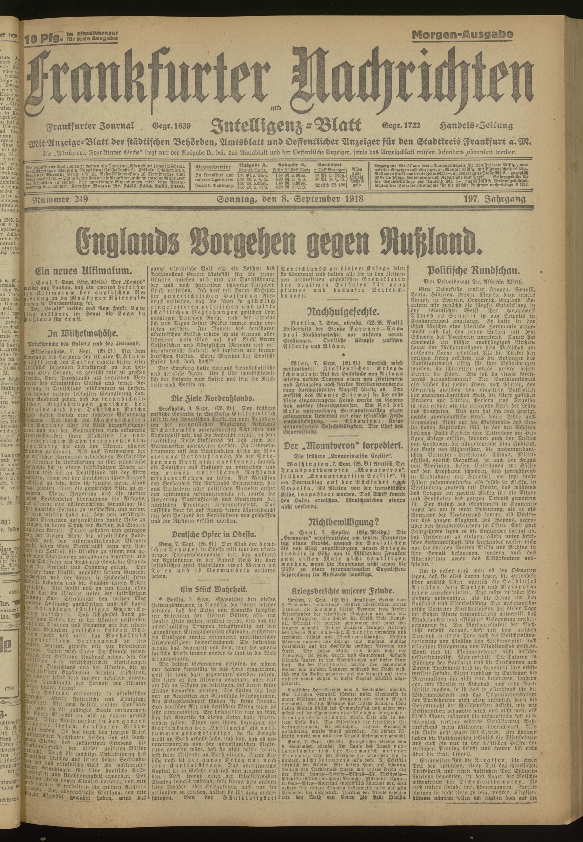 08.09.1918 Morgen-Ausgabe = Nr. 249