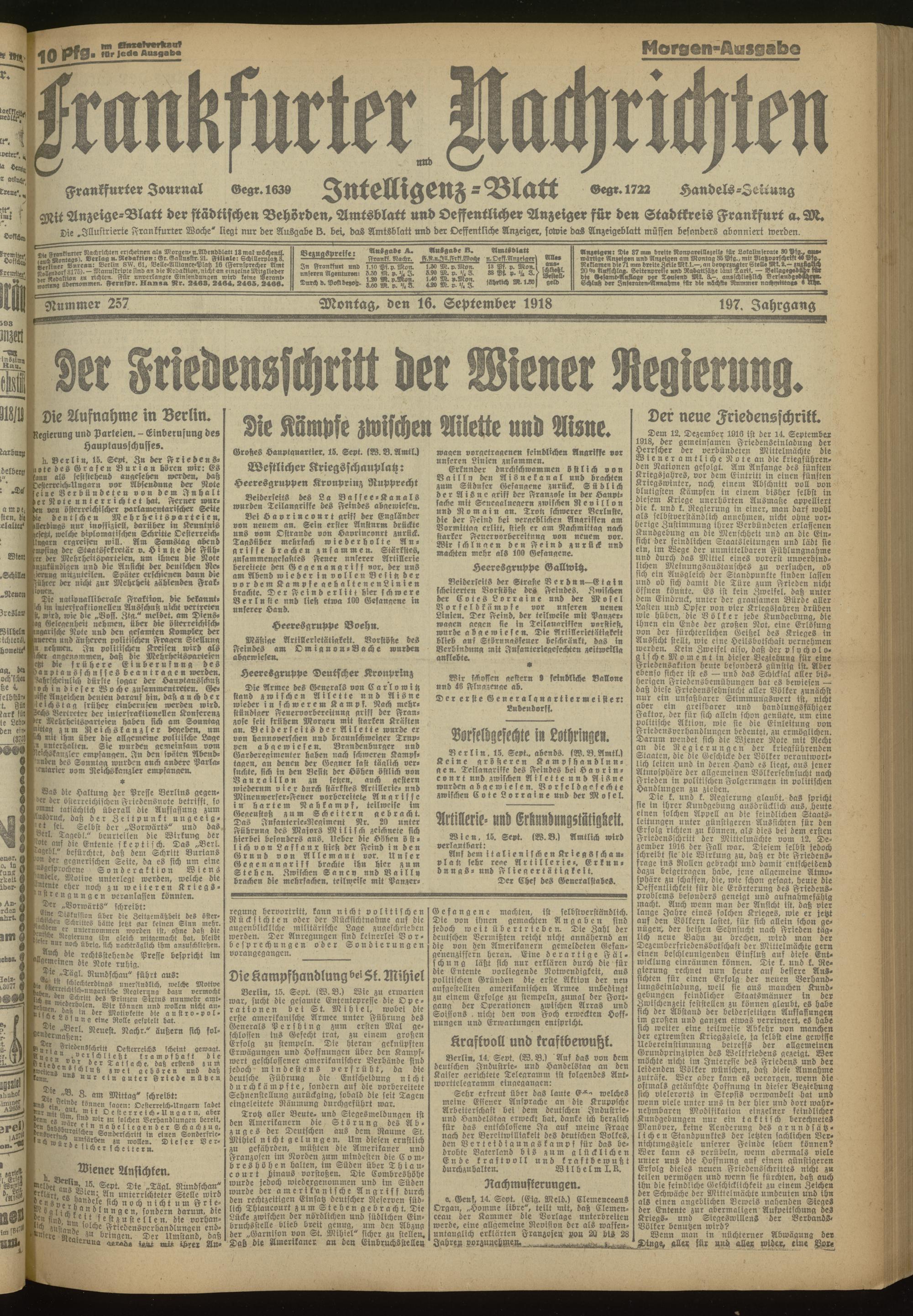 16.09.1918 Morgen-Ausgabe = Nr. 257
