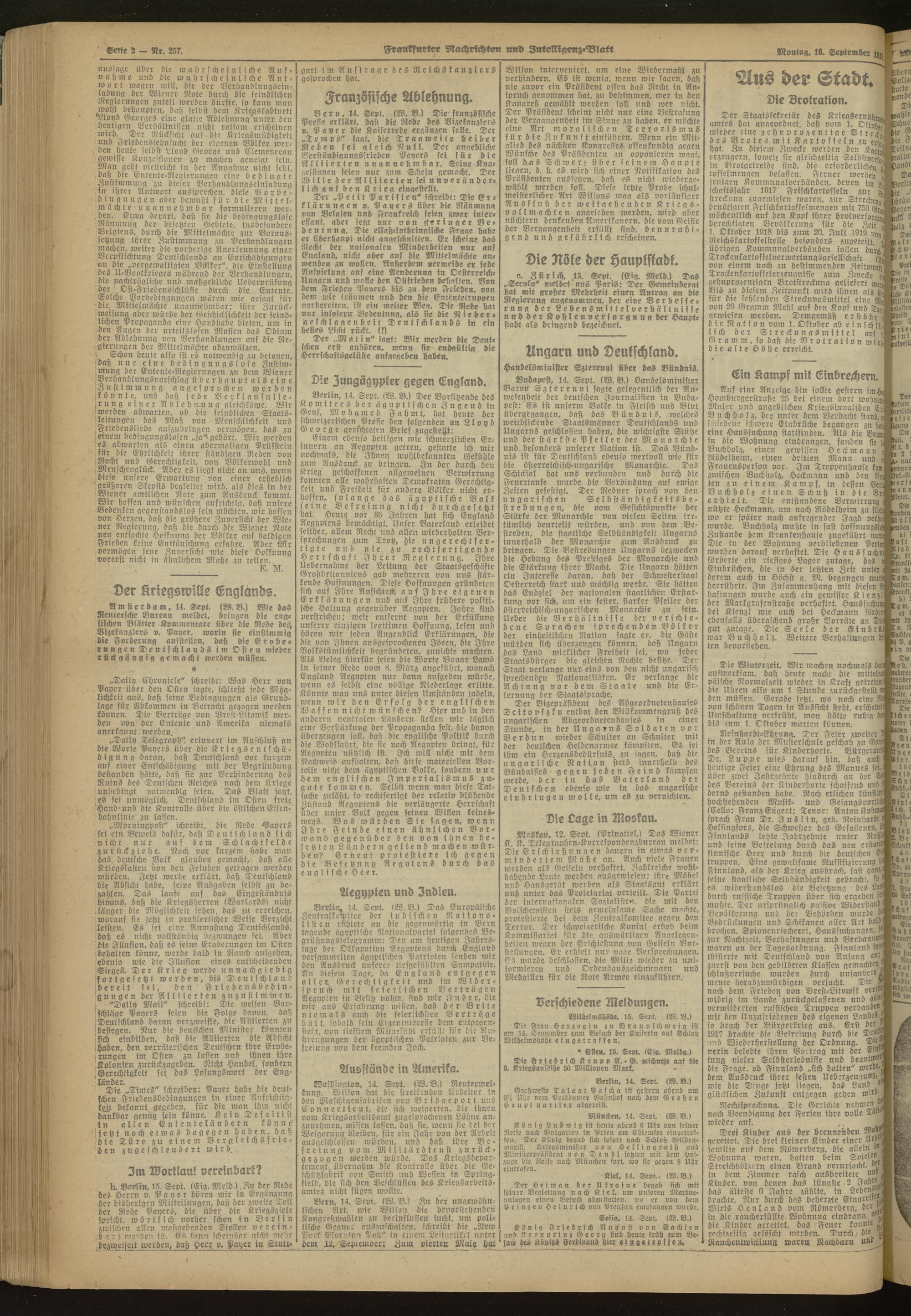 16.09.1918 Morgen-Ausgabe = Nr. 257