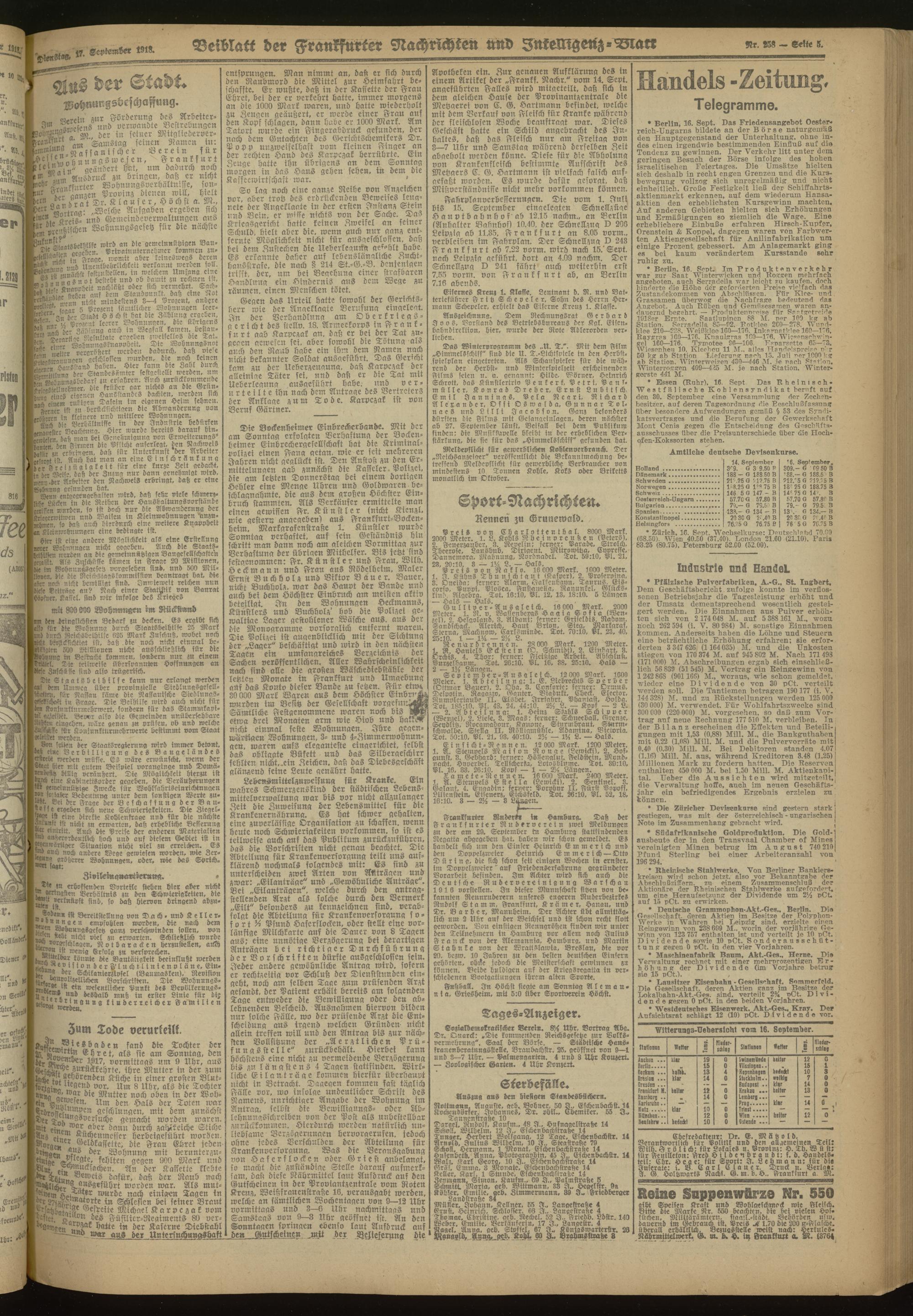 17.09.1918 Morgen-Ausgabe = Nr. 258