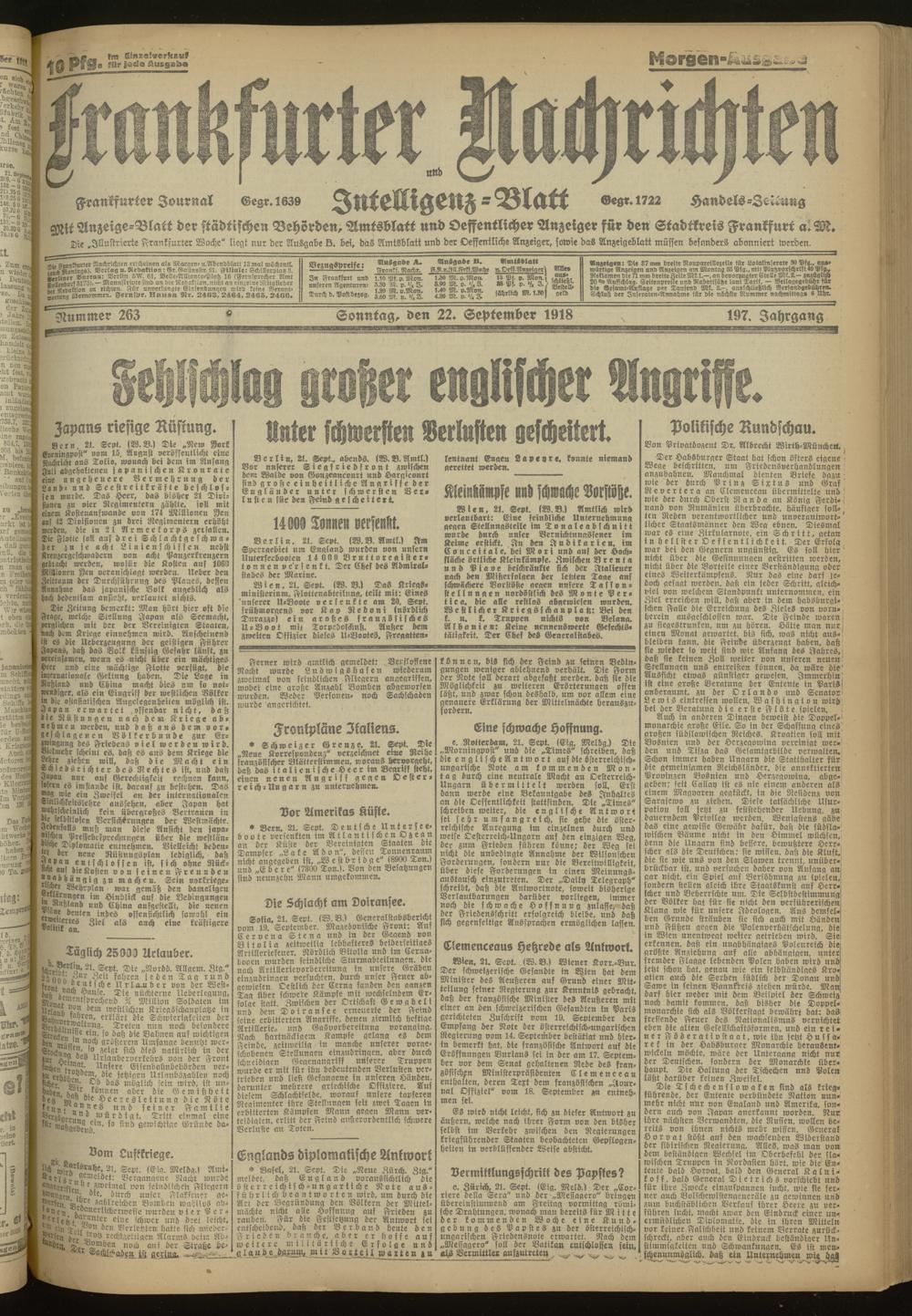 22.09.1918 Morgen-Ausgabe = Nr. 263