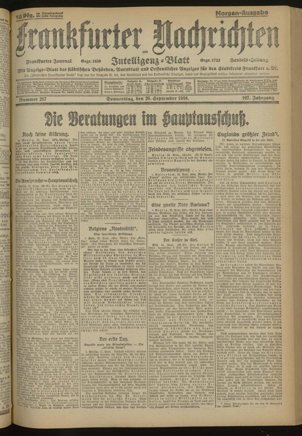 26.09.1918 Morgen-Ausgabe = Nr. 267