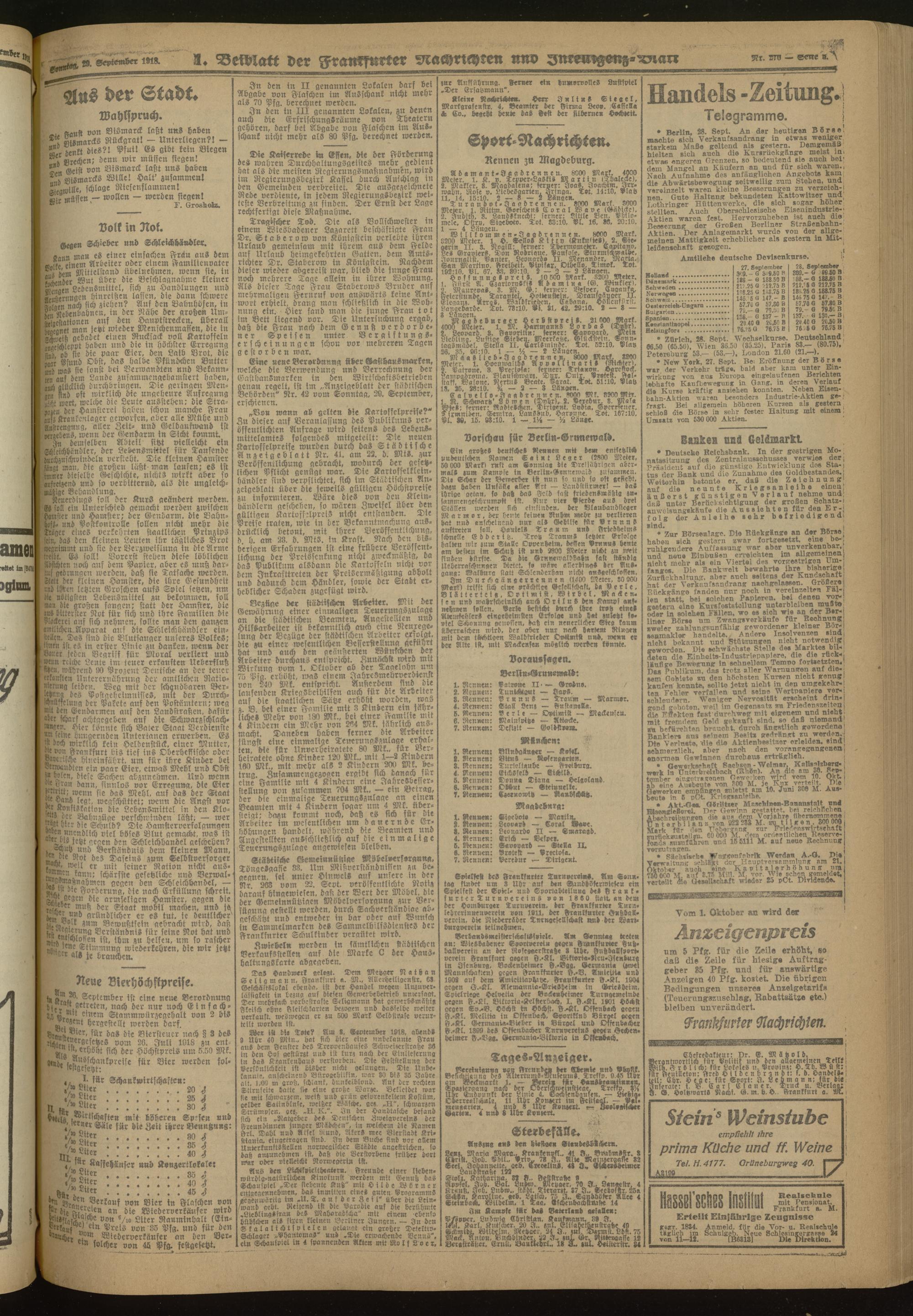 29.09.1918 Morgen-Ausgabe = Nr. 270