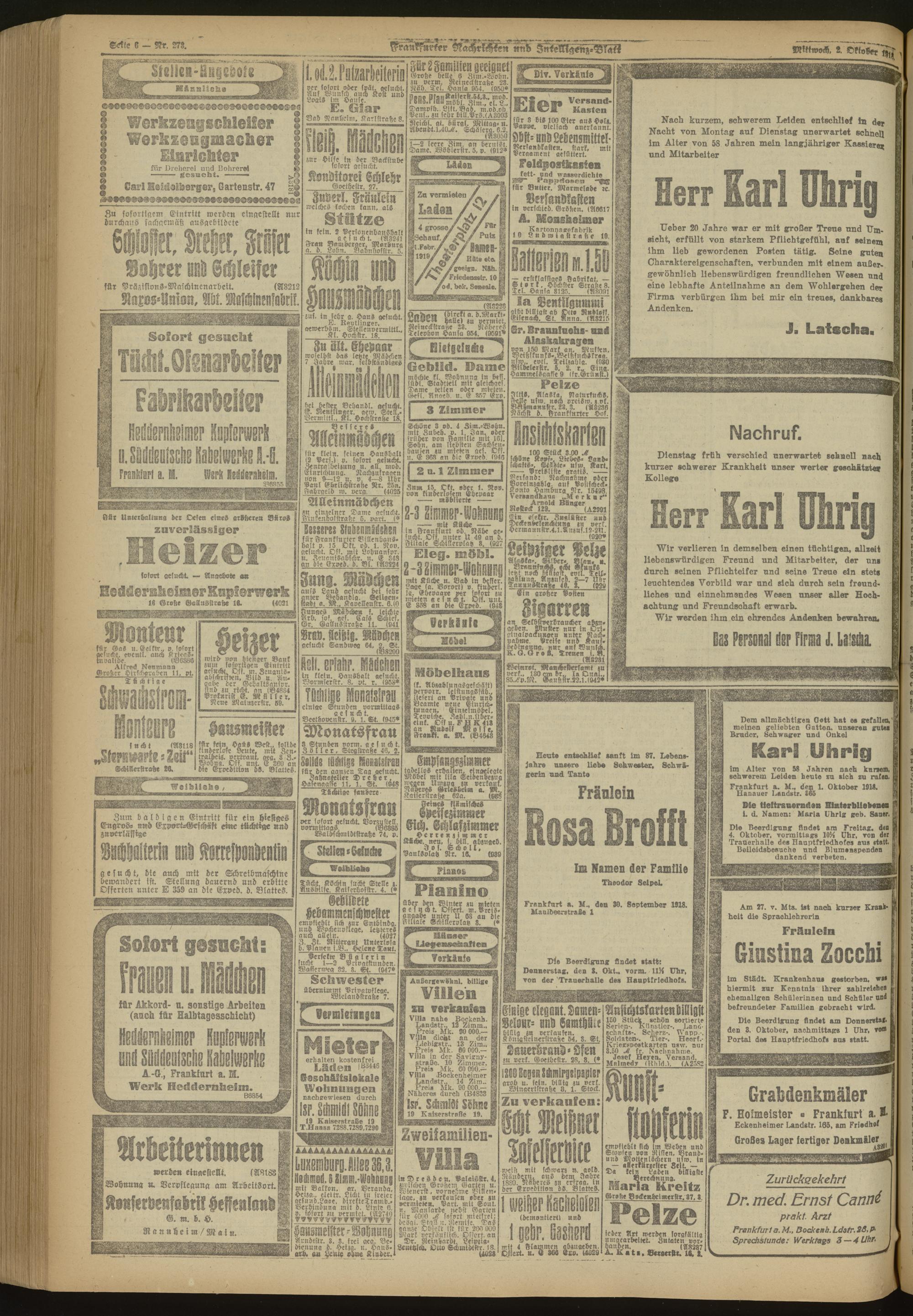 02.10.1918 Morgen-Ausgabe = Nr. 273