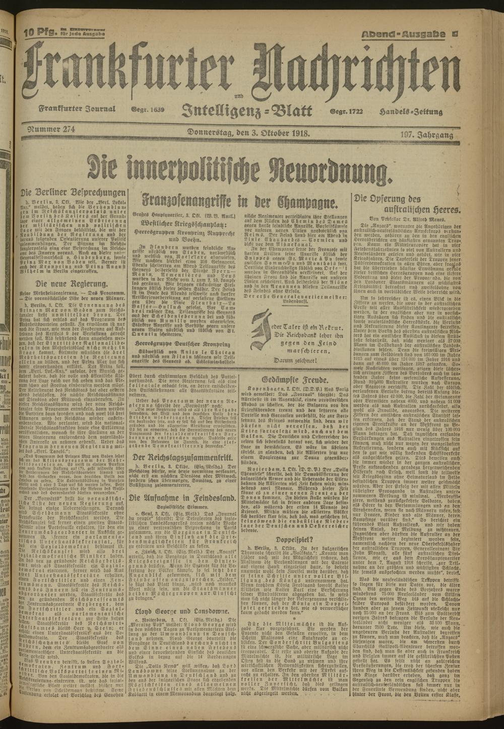 03.10.1918 Abend-Ausgabe = Nr. 274