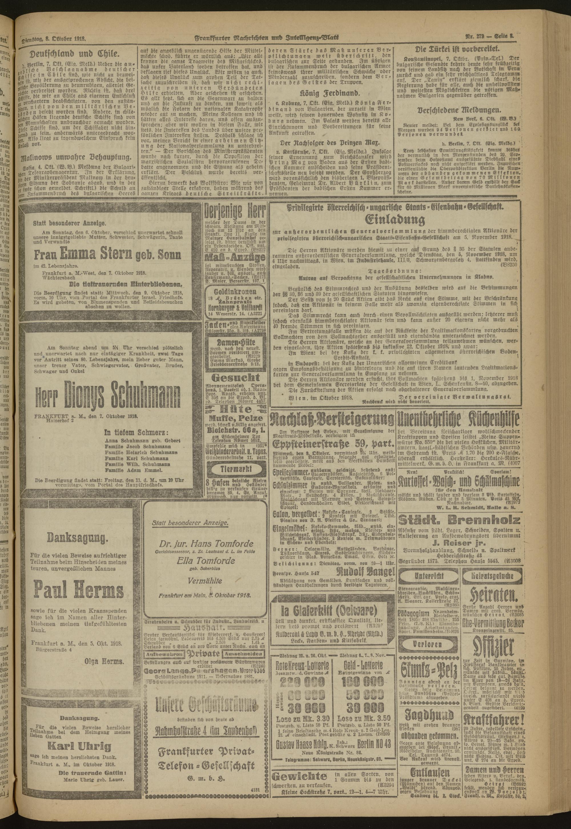 08.10.1918 Morgen-Ausgabe = Nr. 279