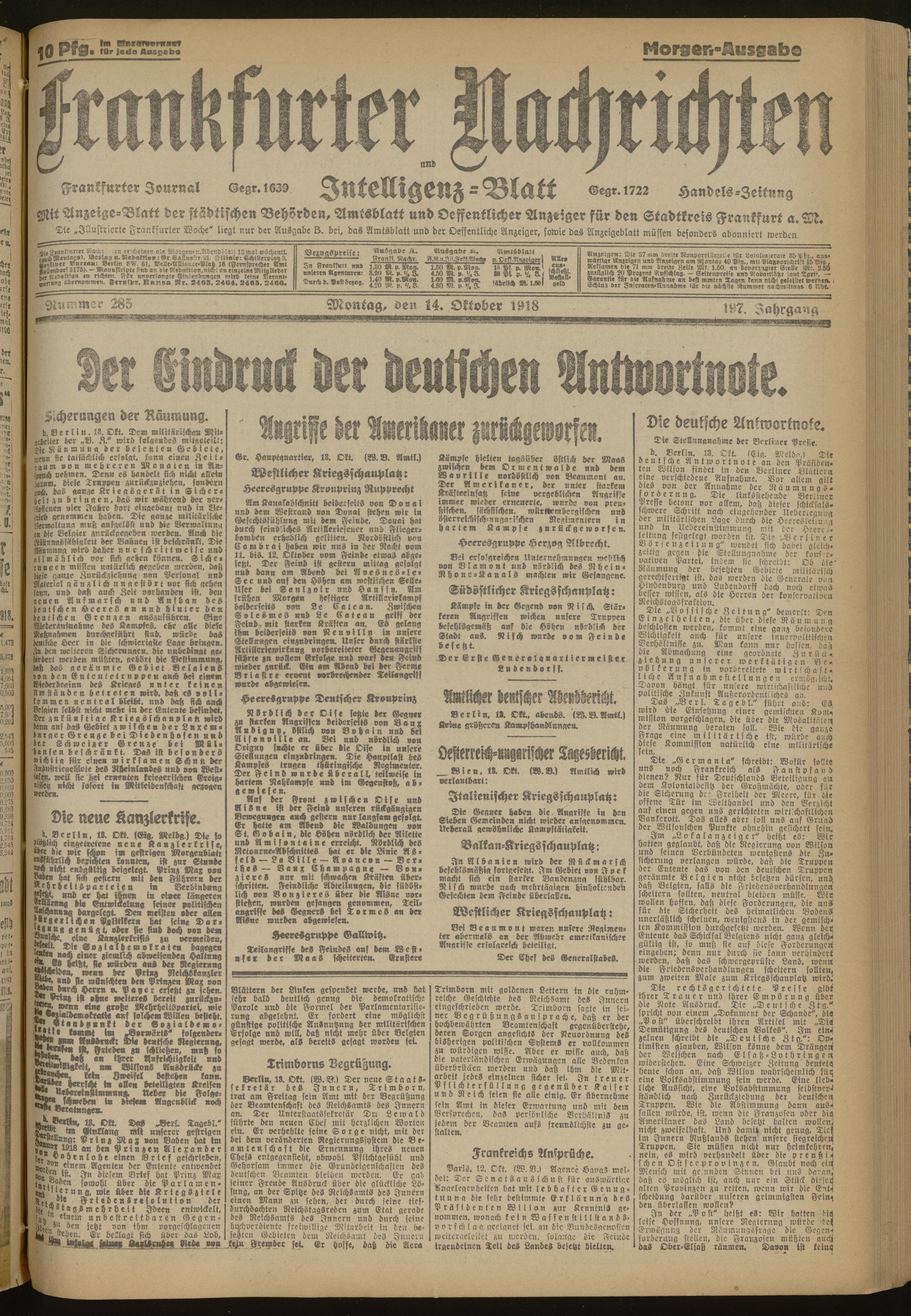 14.10.1918 Morgen-Ausgabe = Nr. 285