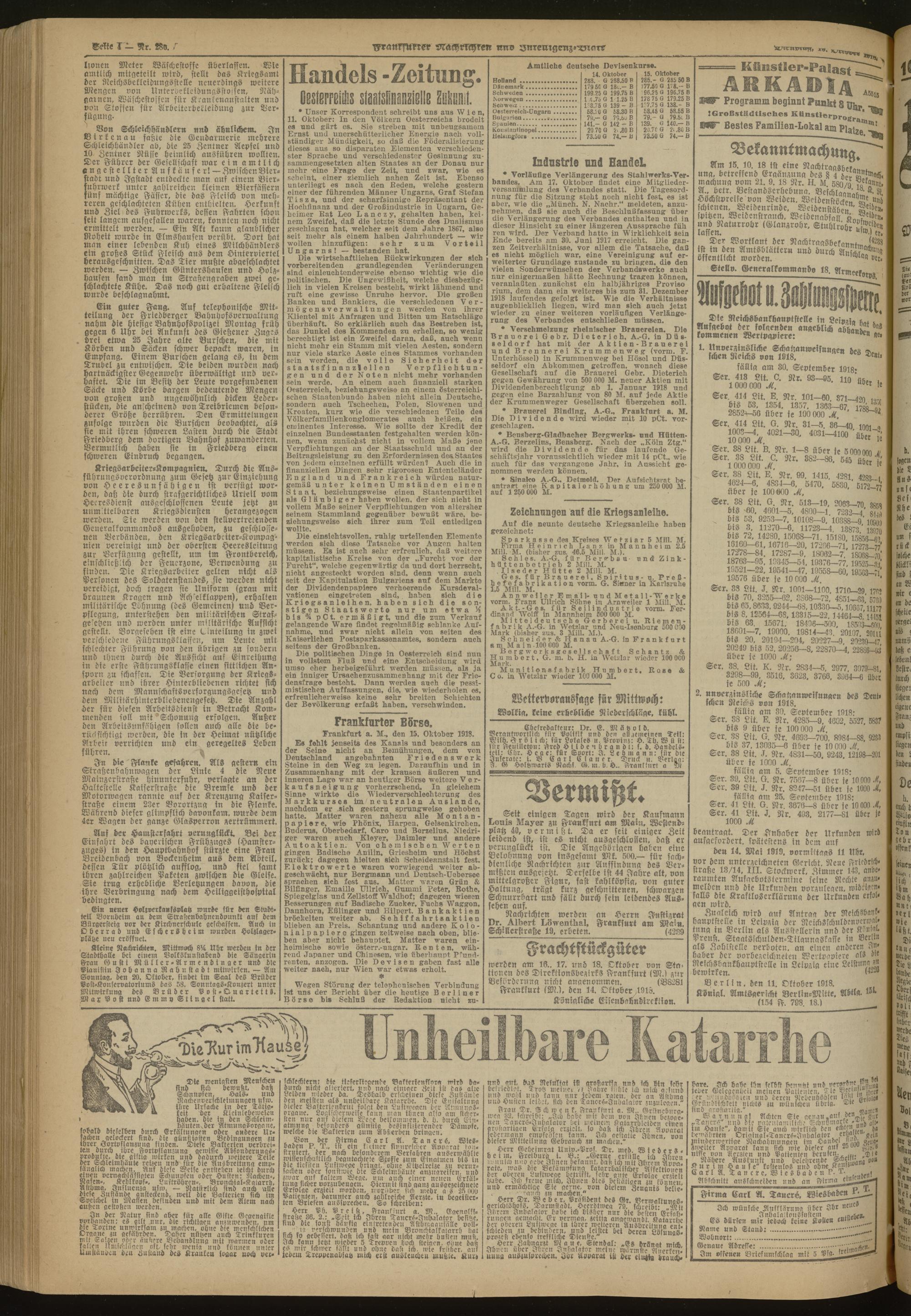 15.10.1918 Abend-Ausgabe = Nr. 286