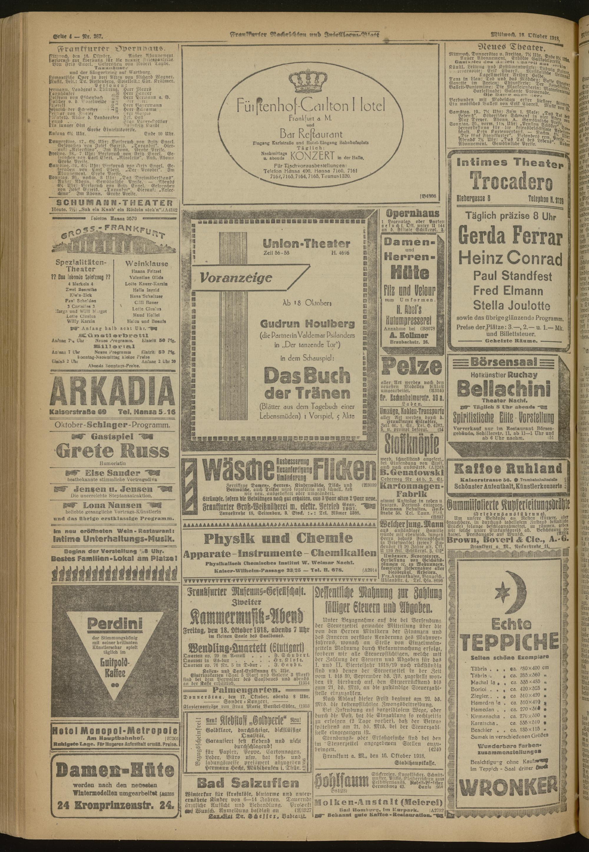 16.10.1918 Morgen-Ausgabe = Nr. 287