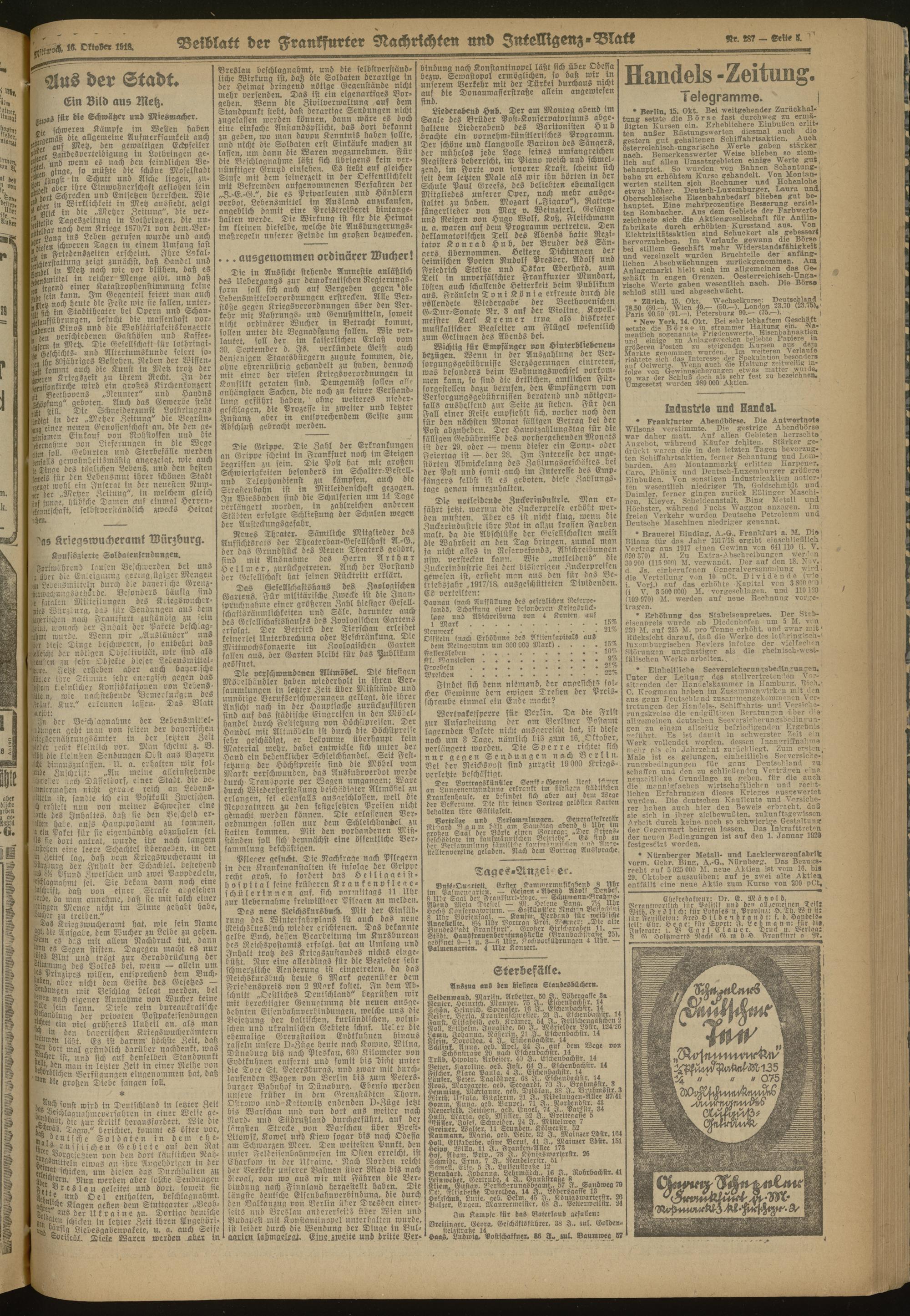 16.10.1918 Morgen-Ausgabe = Nr. 287