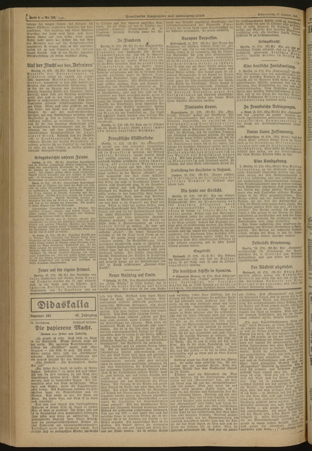 17.10.1918 Morgen-Ausgabe = Nr. 288