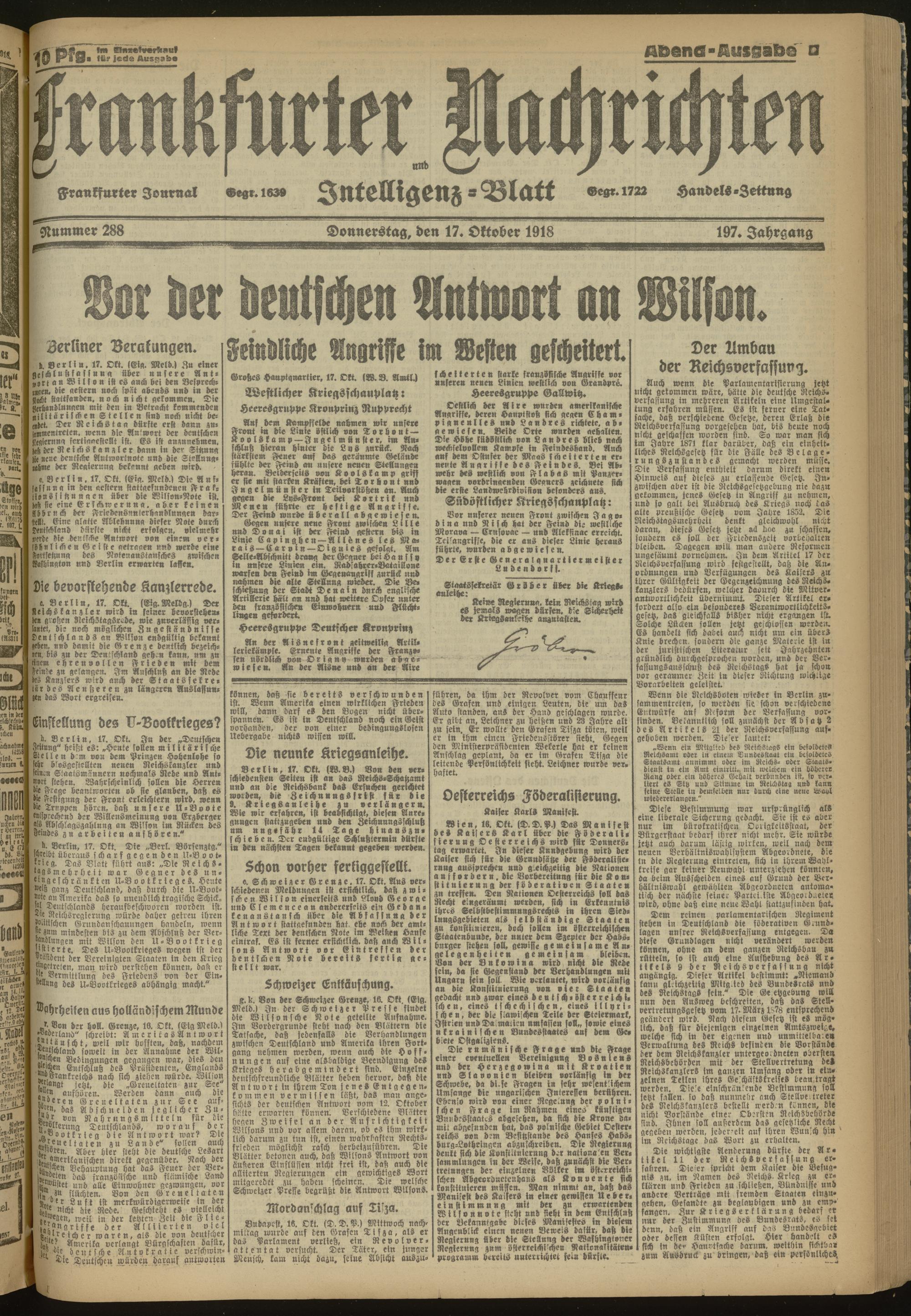 17.10.1918 Abend-Ausgabe = Nr. 288