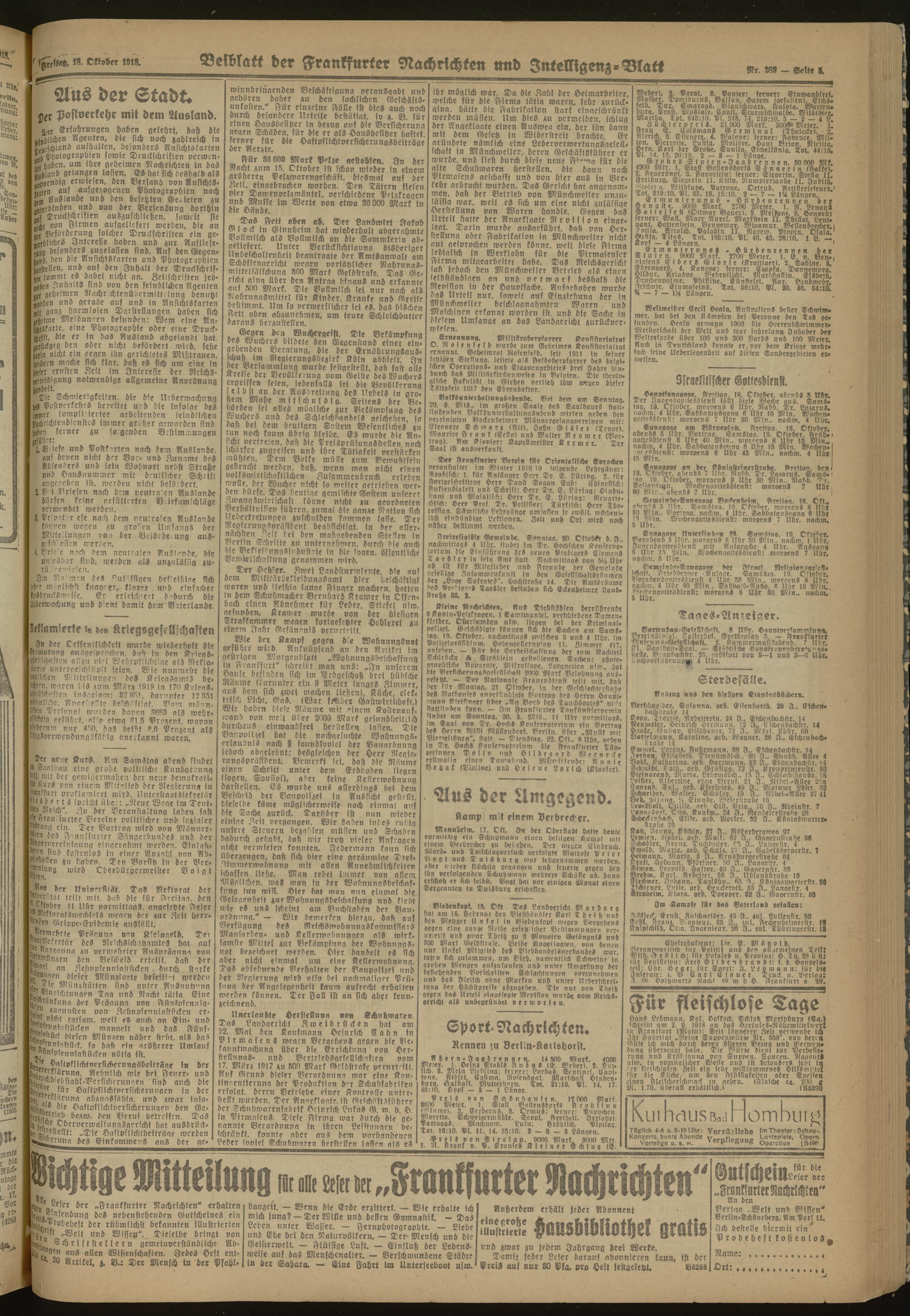 18.10.1918 Morgen-Ausgabe = Nr. 289