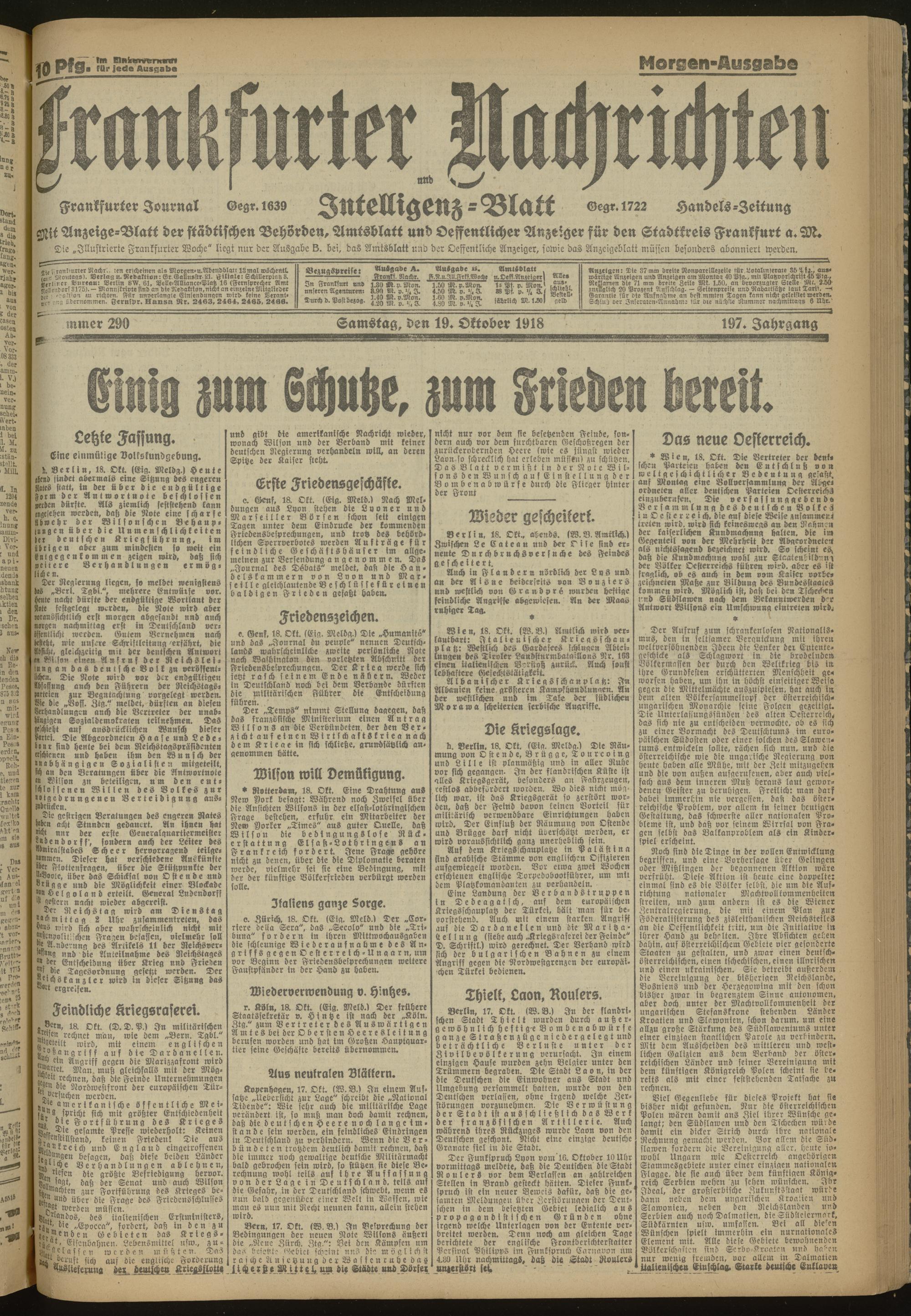 19.10.1918 Morgen-Ausgabe = Nr. 290