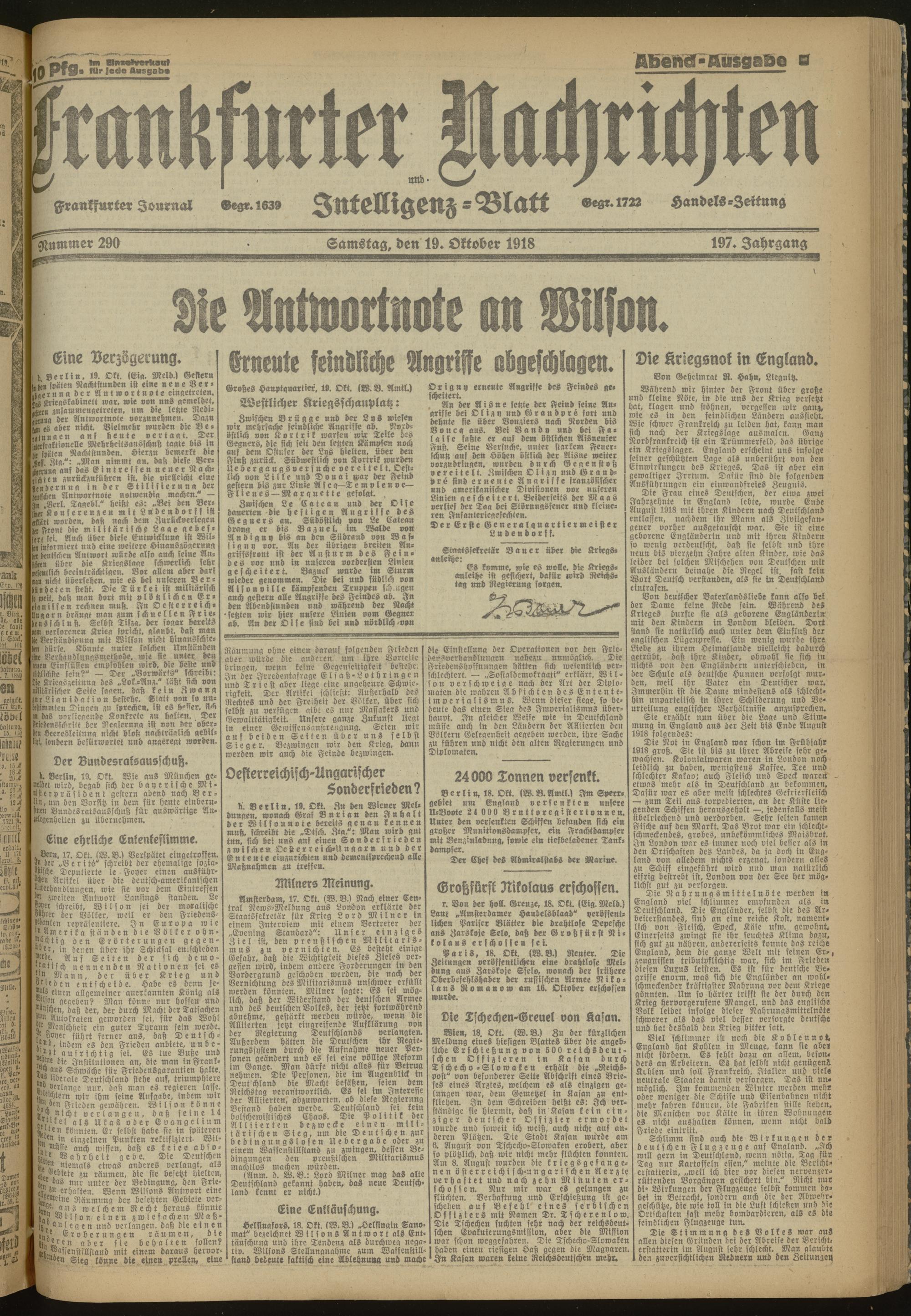 19.10.1918 Abend-Ausgabe = Nr. 290