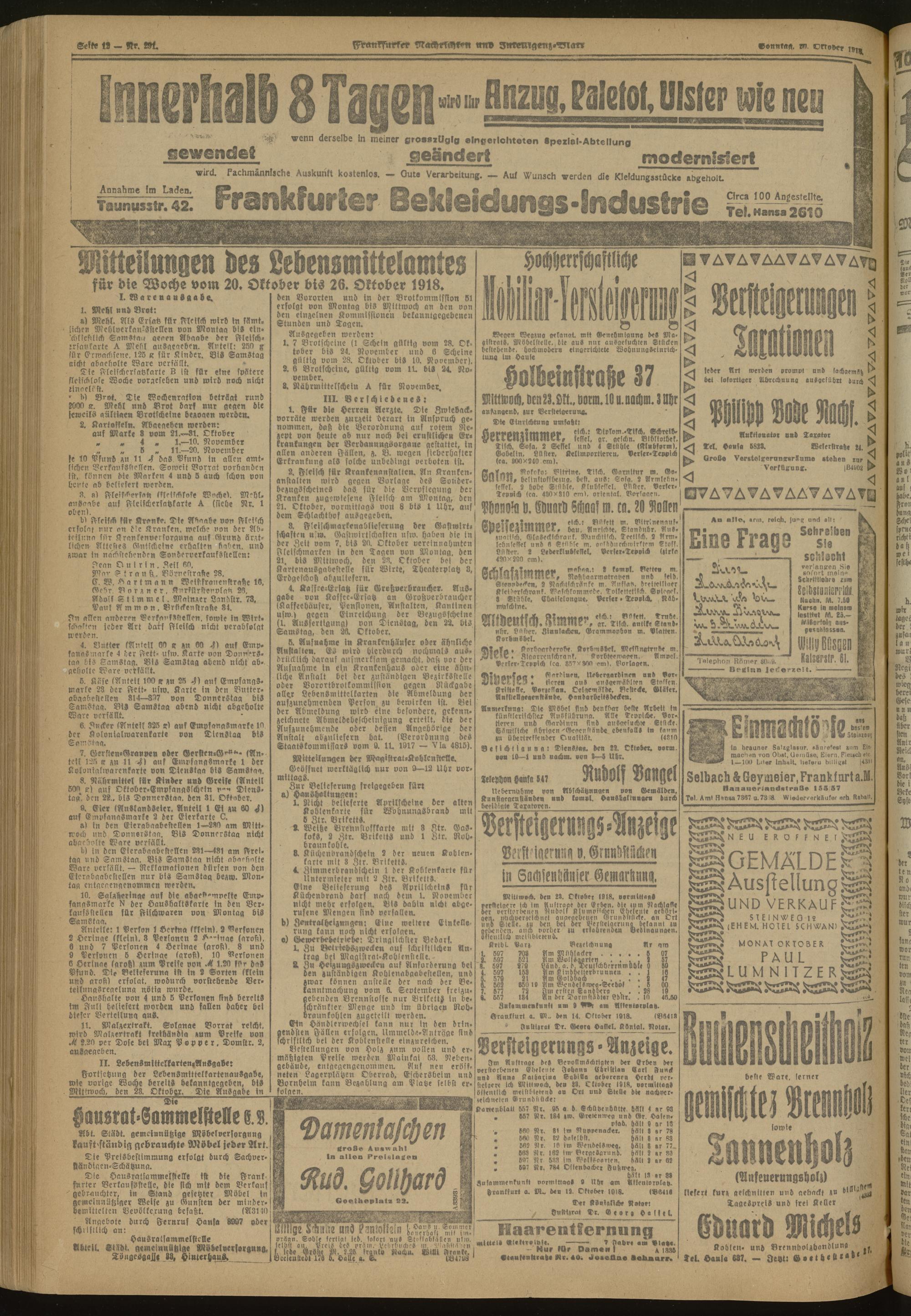 20.10.1918 Morgen-Ausgabe = Nr. 291