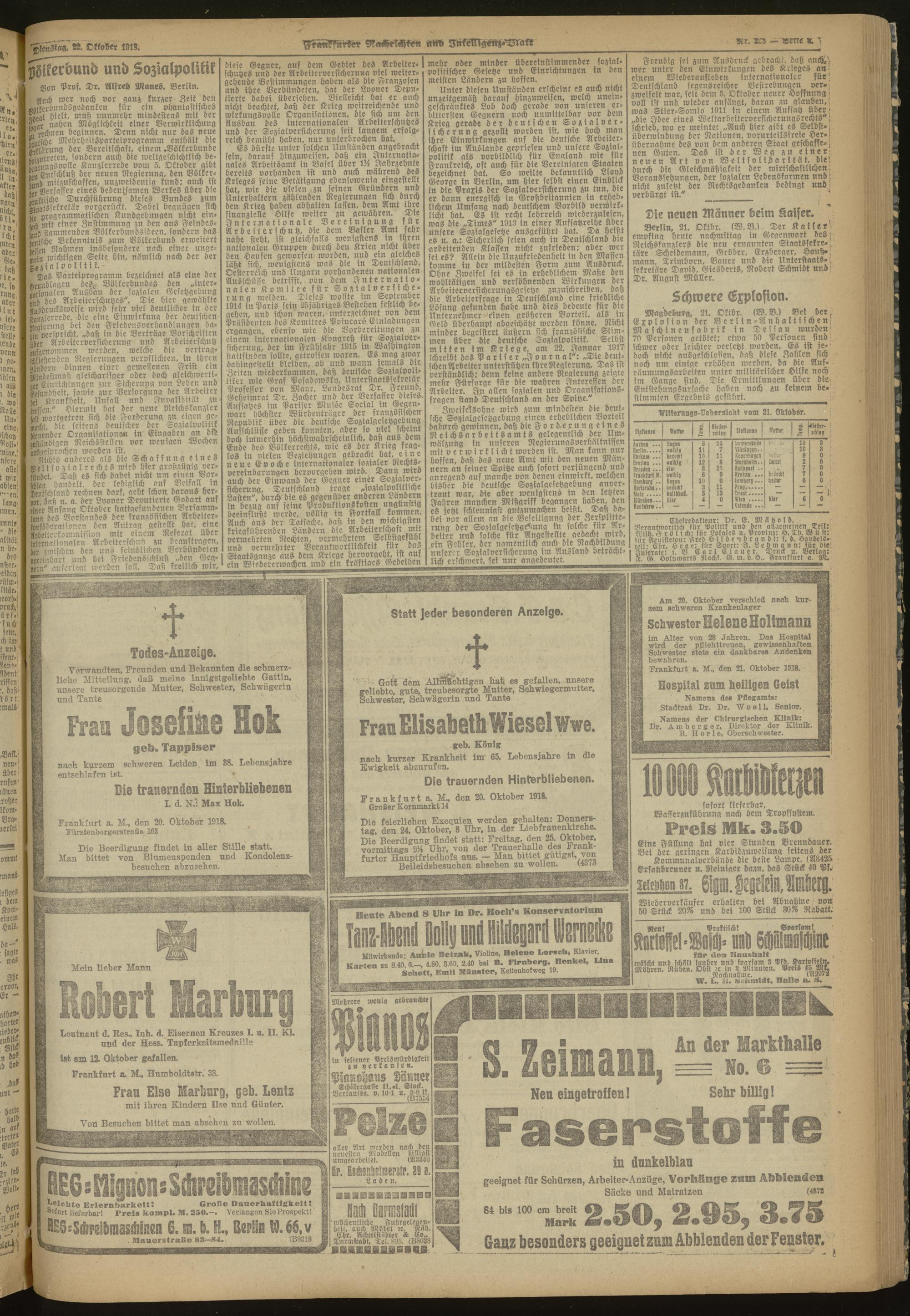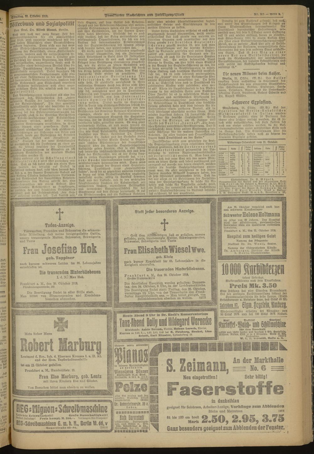 22.10.1918 Morgen-Ausgabe = Nr. 293