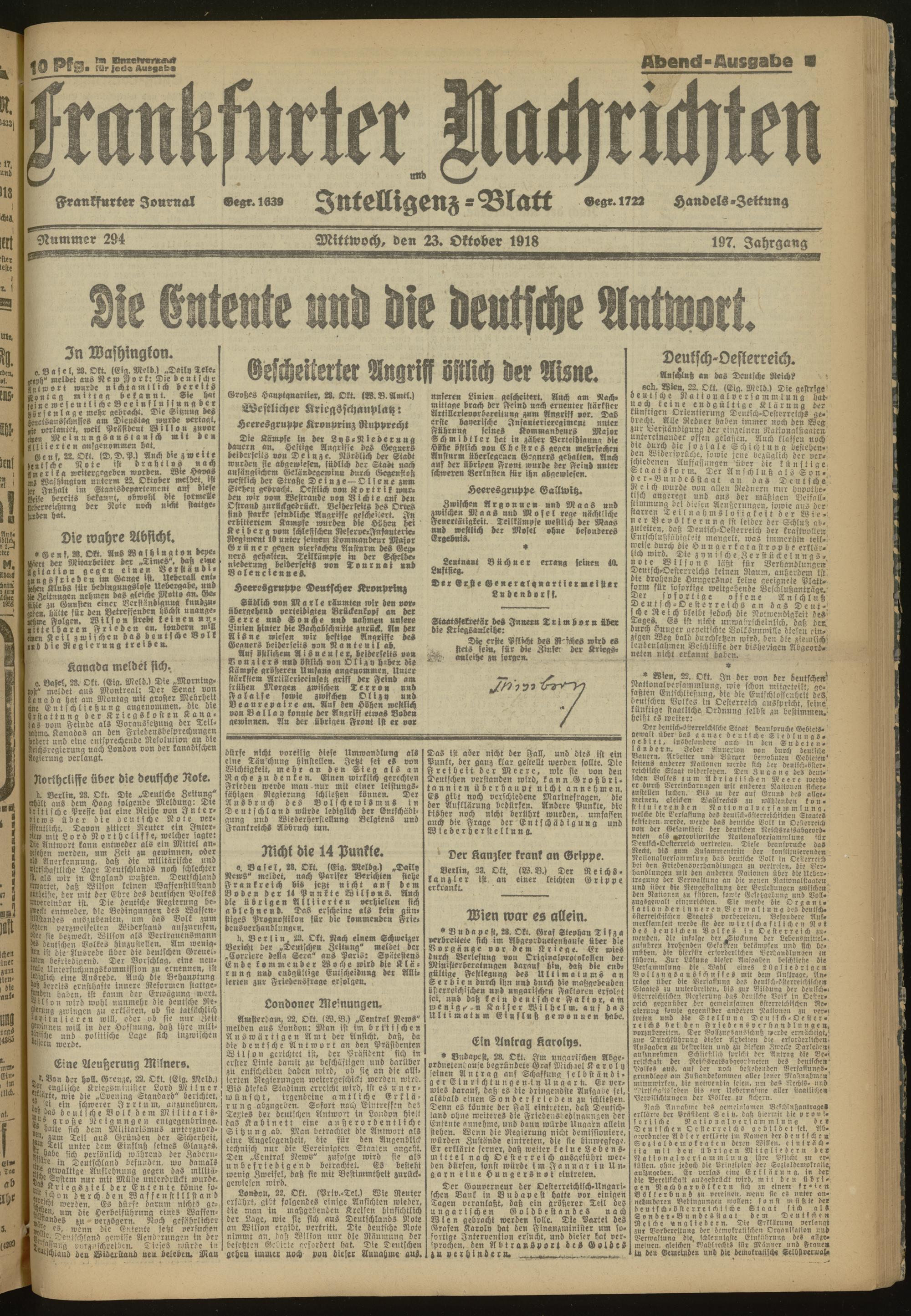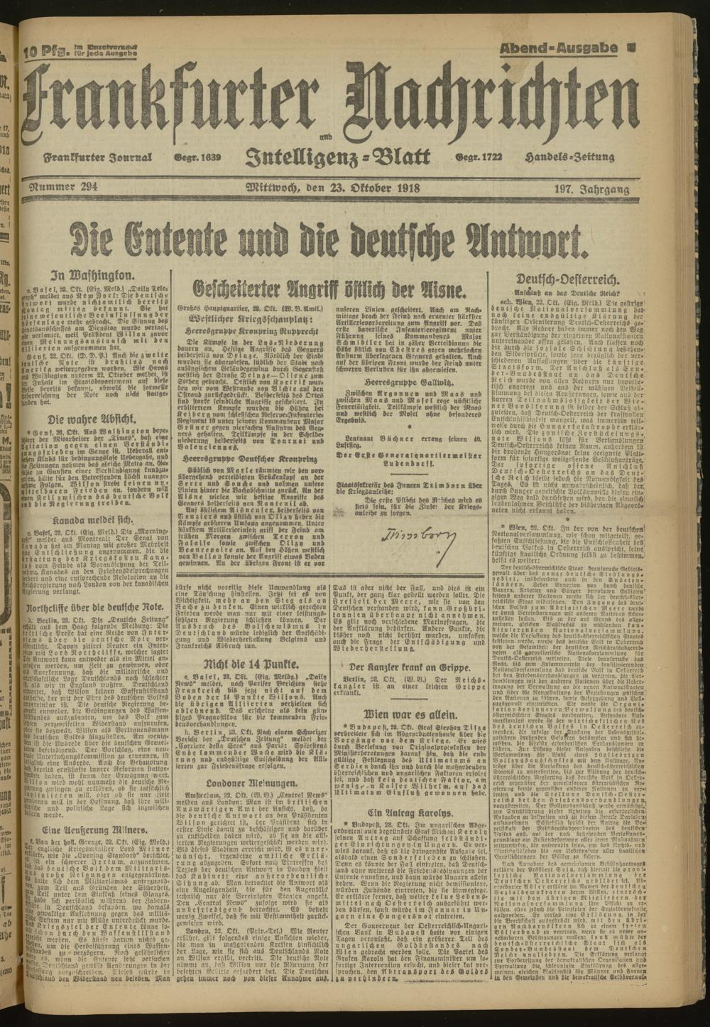 23.10.1918 Abend-Ausgabe = Nr. 294