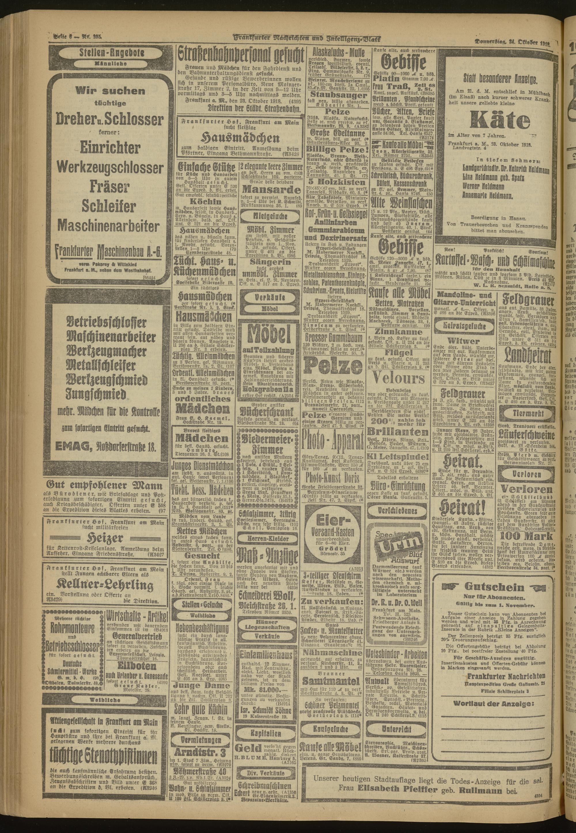 24.10.1918 Morgen-Ausgabe = Nr. 295