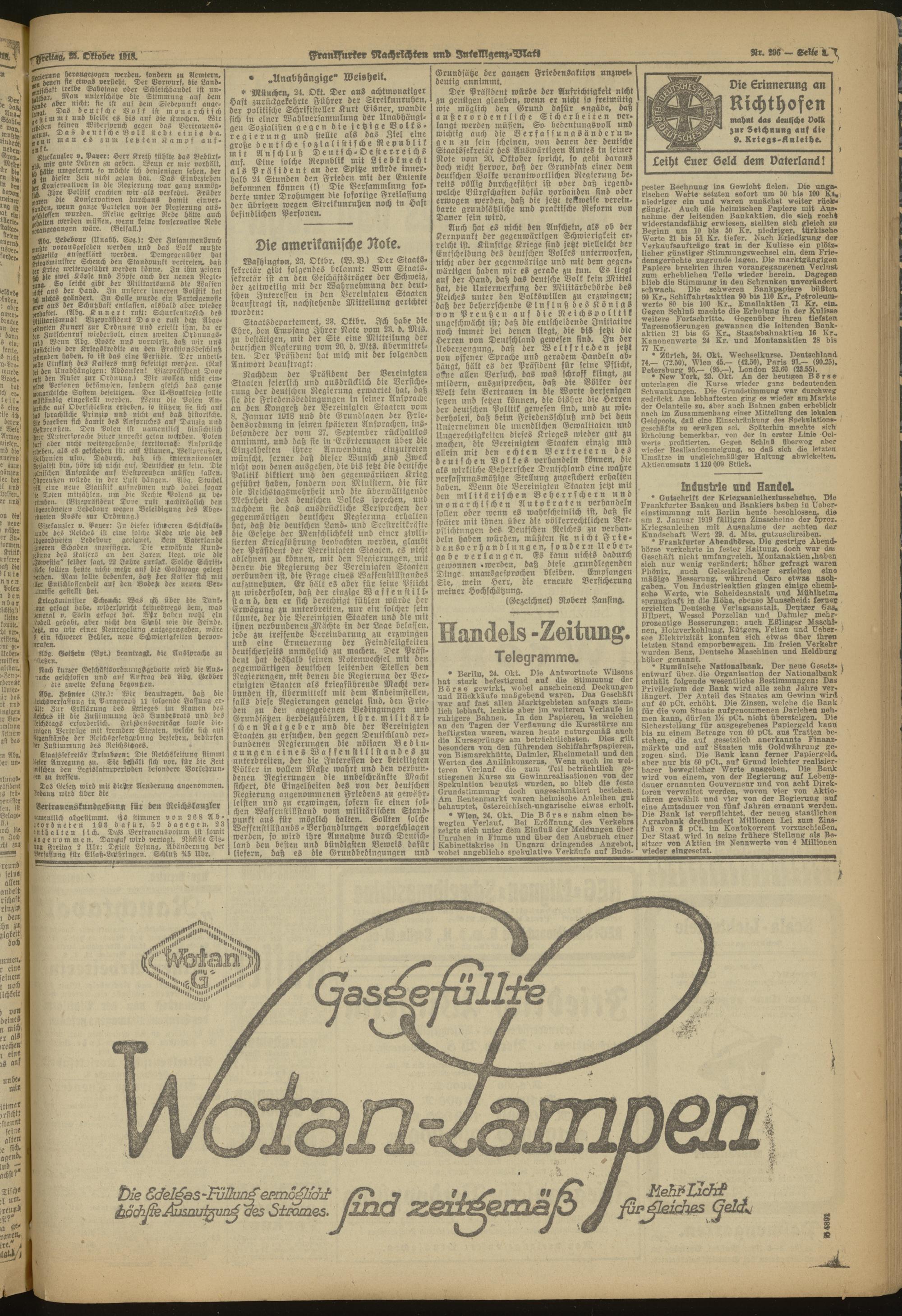 25.10.1918 Morgen-Ausgabe = Nr. 296