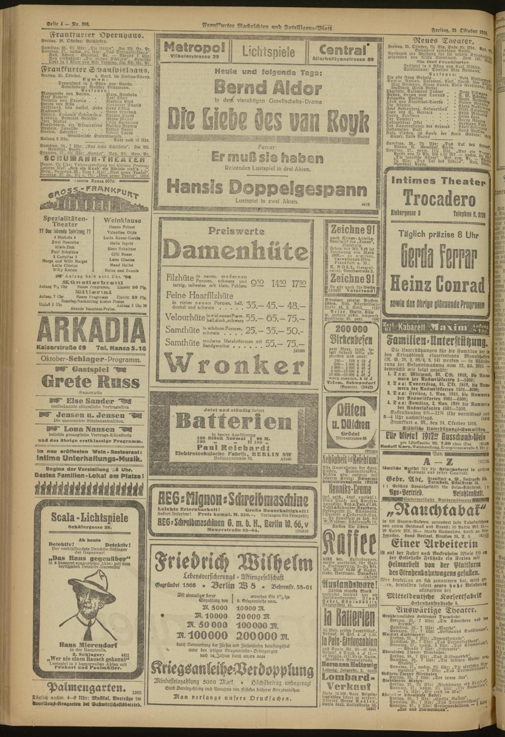 25.10.1918 Morgen-Ausgabe = Nr. 296