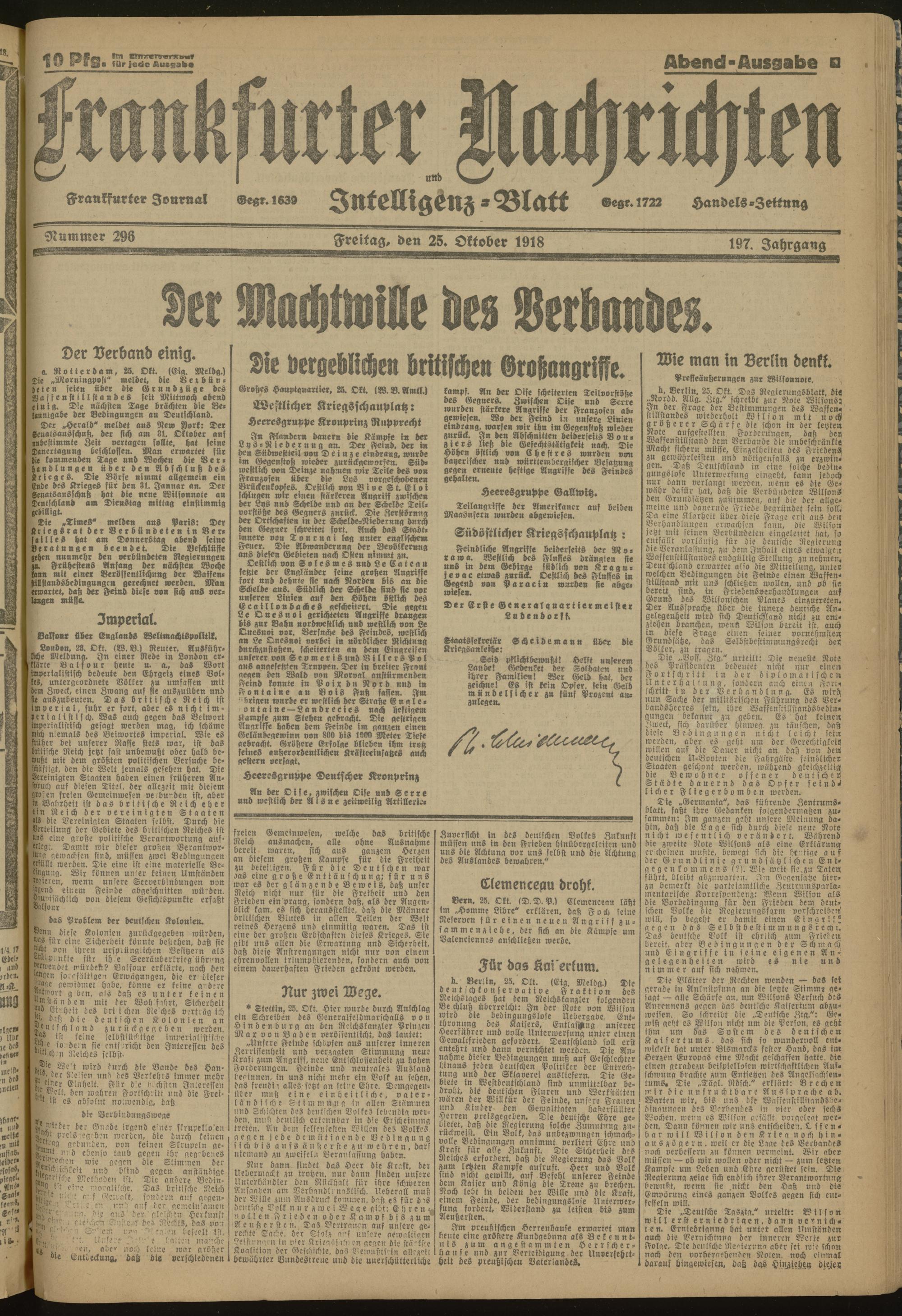 25.10.1918 Abend-Ausgabe = Nr. 296