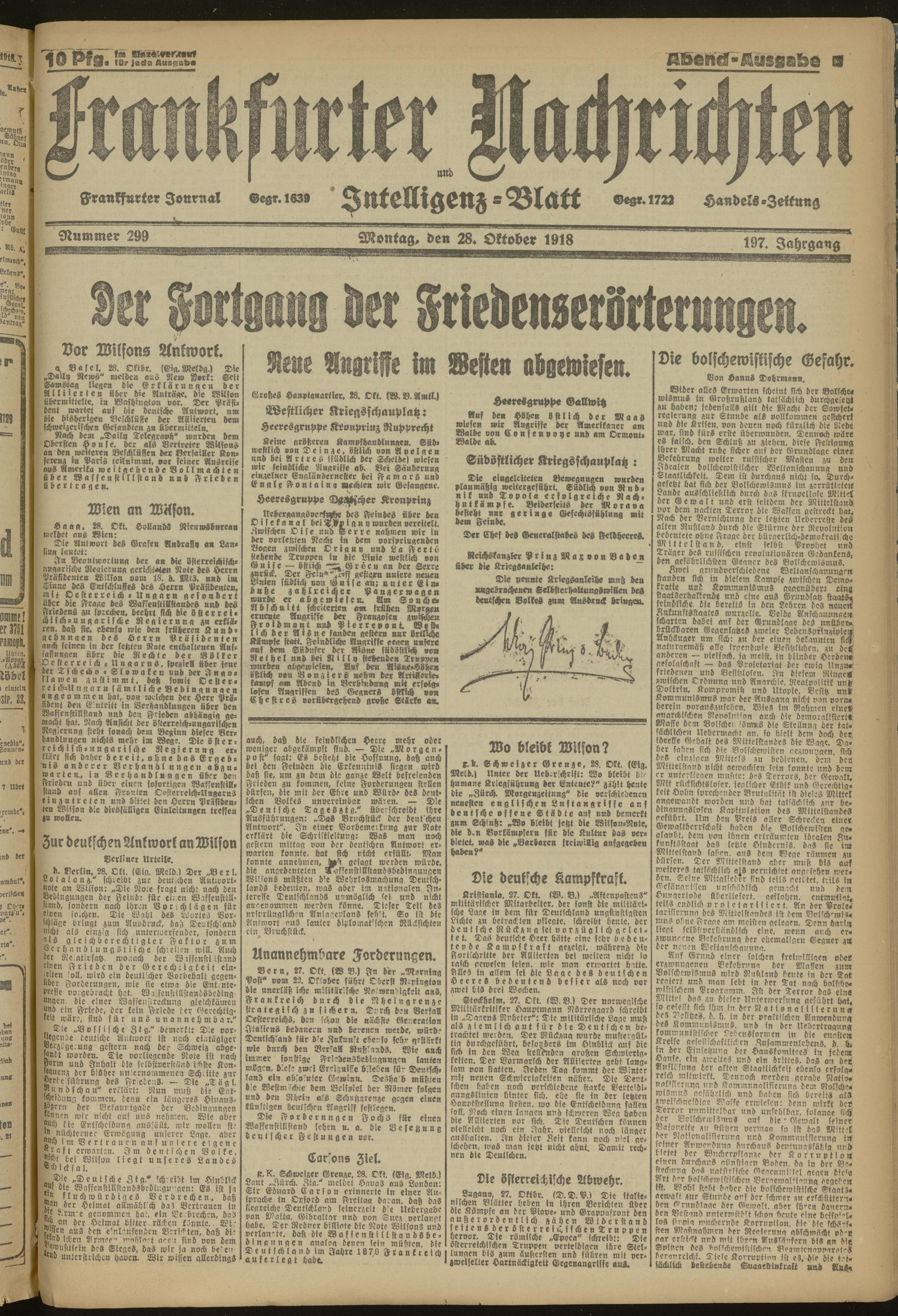 28.10.1918 Abend-Ausgabe = Nr. 299
