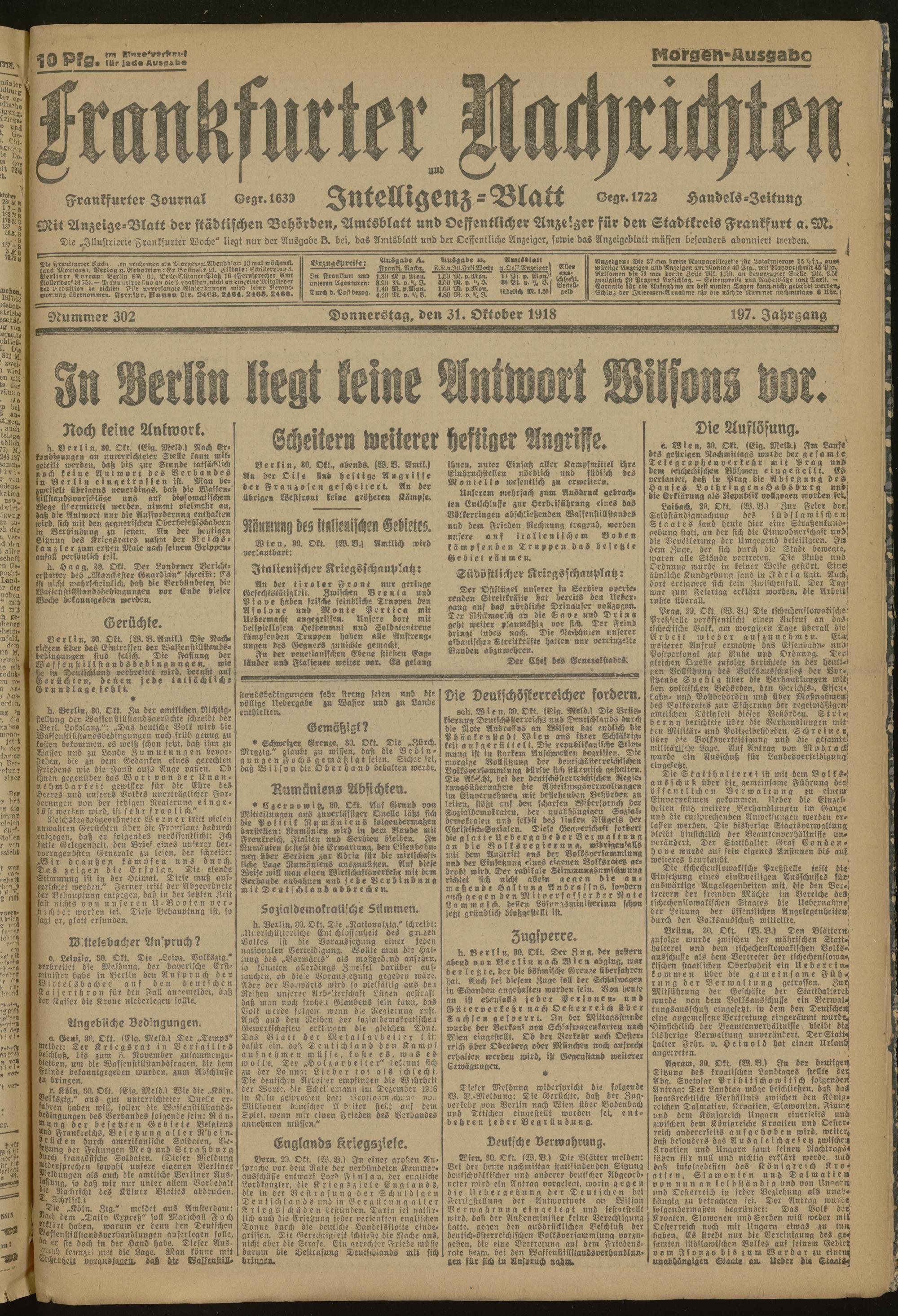 31.10.1918 Morgen-Ausgabe = Nr. 302